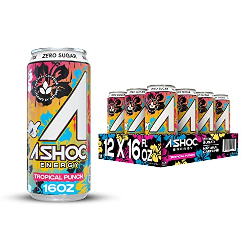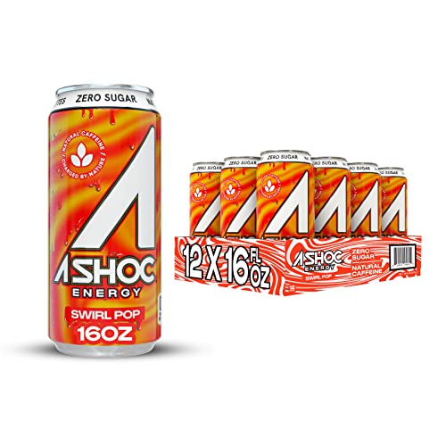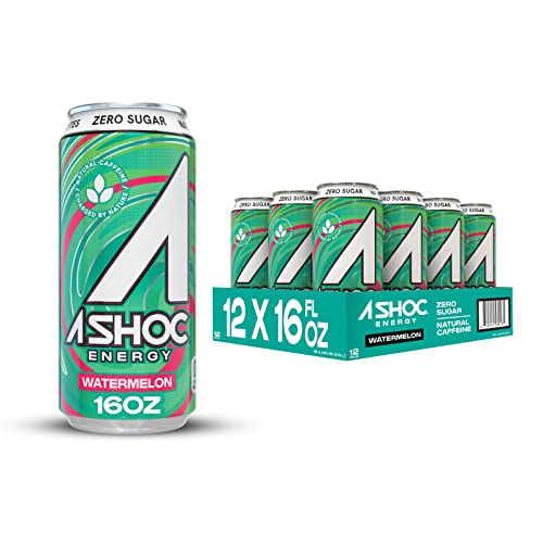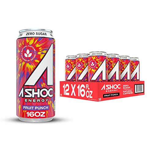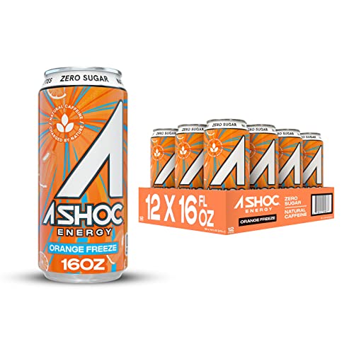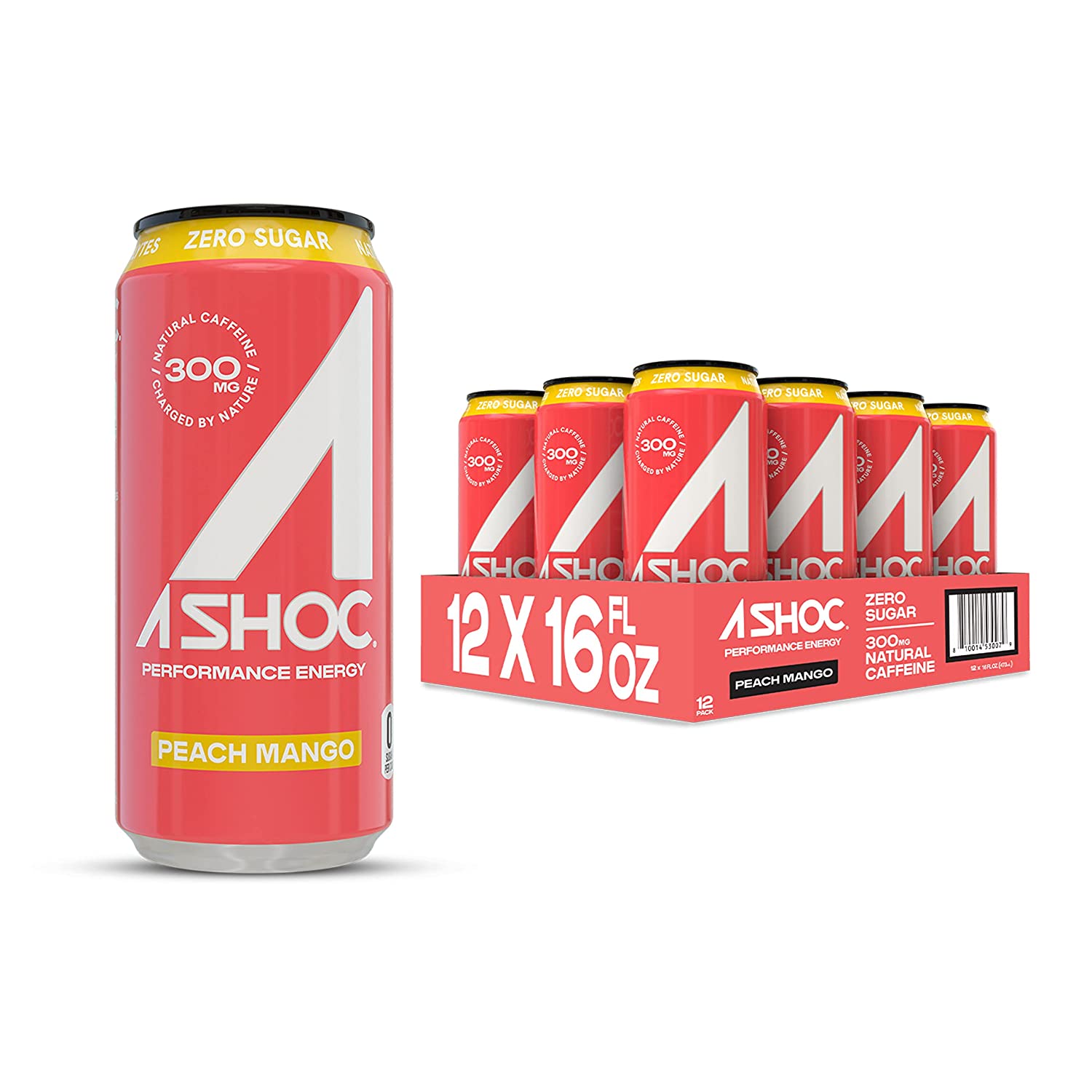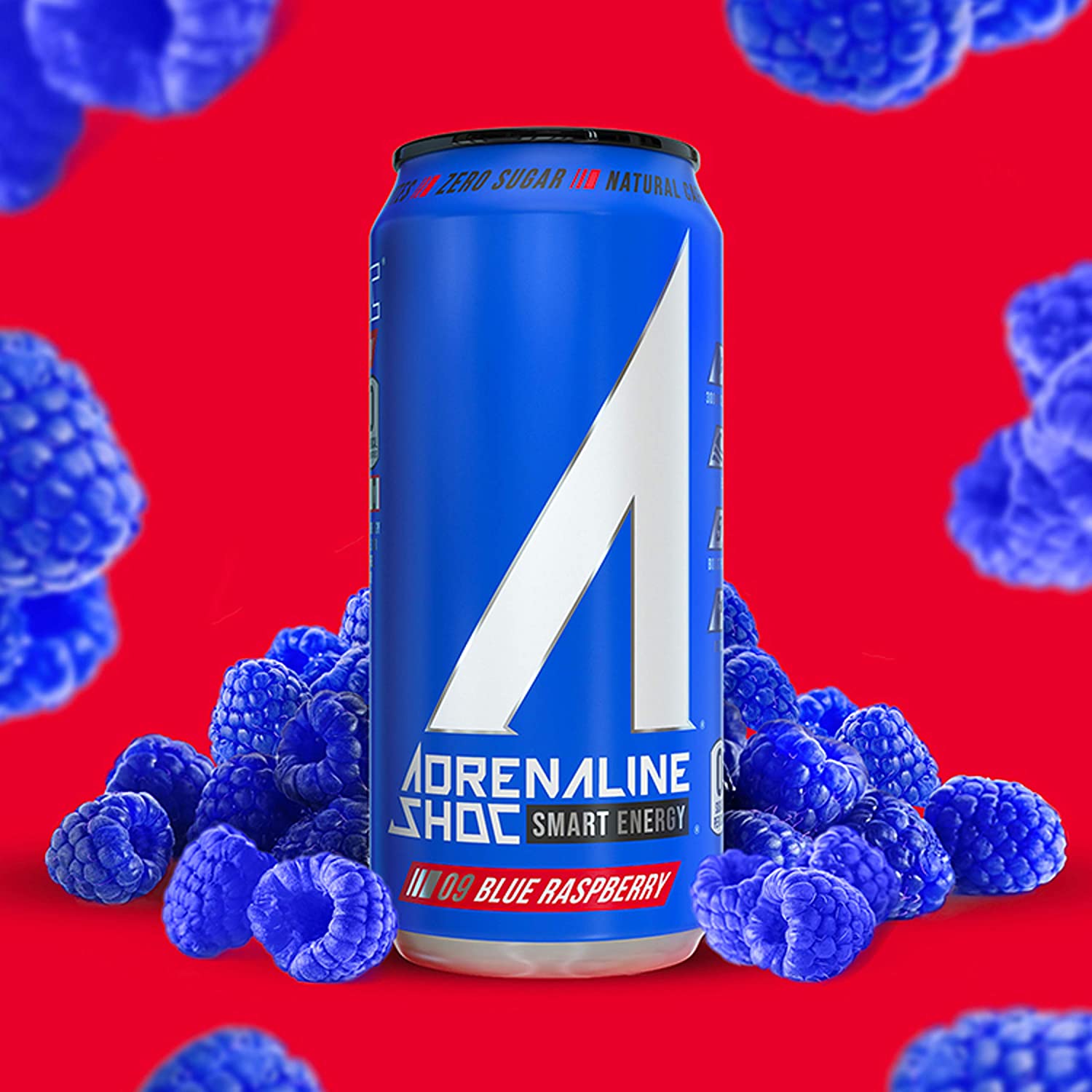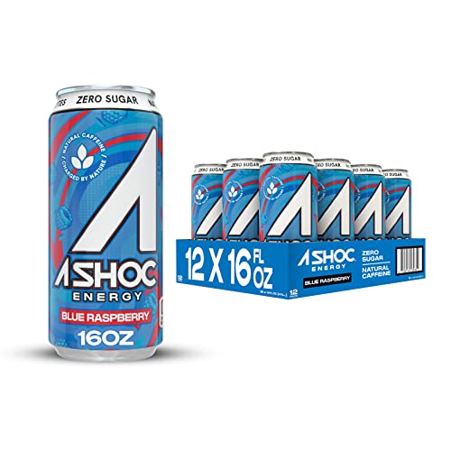 A SHOC Performance Energy Drink, Blue Raspberry, 16 Ounce Can, Natural Energy Blend, BCAAs, Ocean Mineral Electrolytes, and No Chemical Preservatives, 12-pack