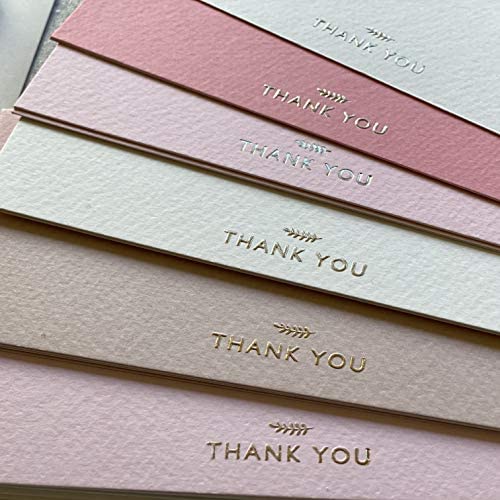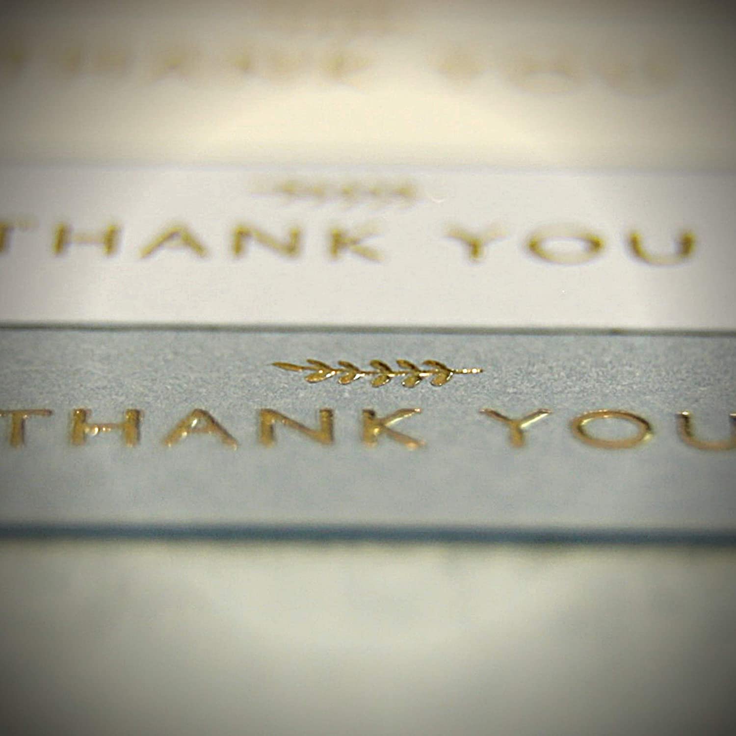 HIGH QUALITY MATERIAL - Solid and high end finish with 320 GSM Italian thick textured paper card embossed gold foil pressed. Non-glossy paper, means no fingerprints or scratches when handling these thank-you cards. Will not smudge or smear.
