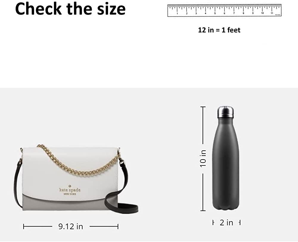 Use as handbag with chain with 6.5" drop; shoulder bag or crossbody wear with removeable, adjustable strap with drop of approximately 22"