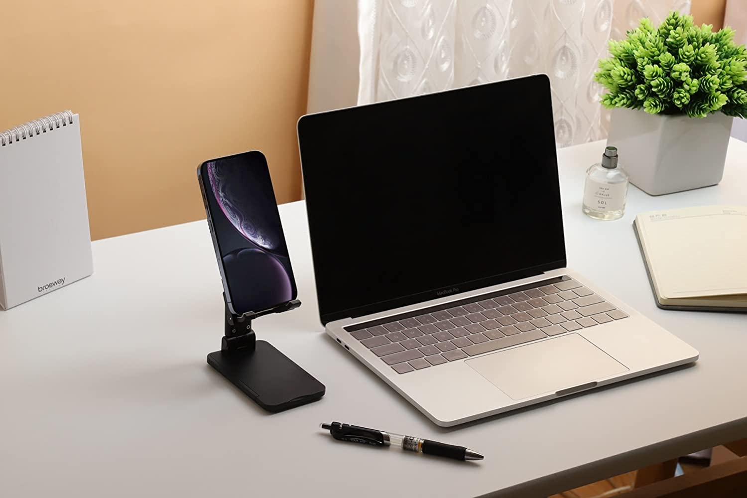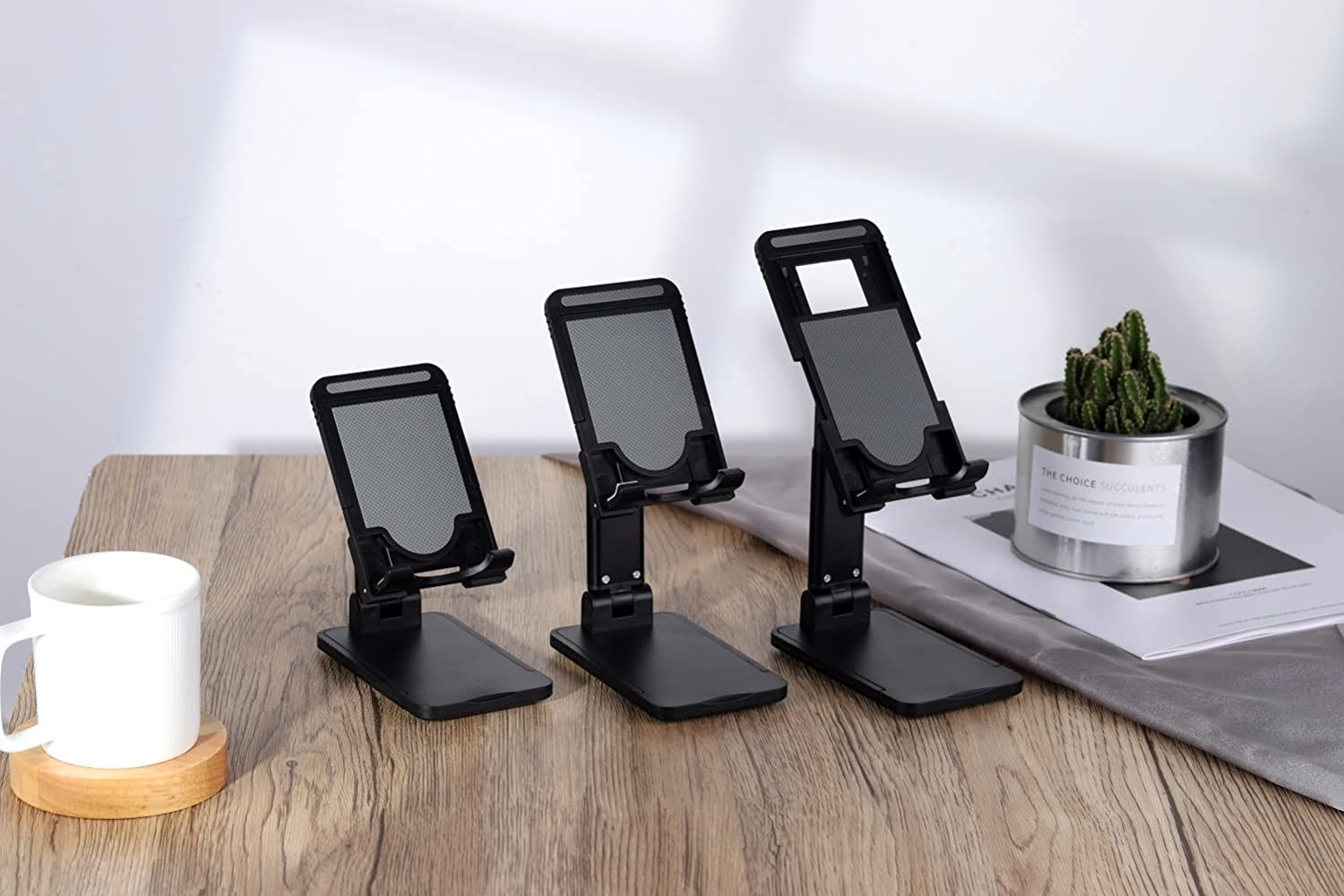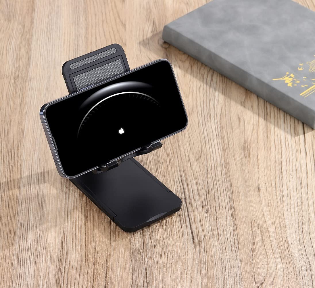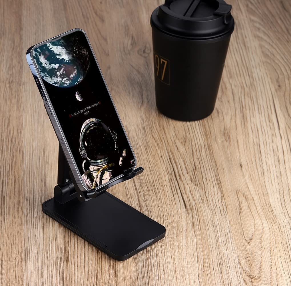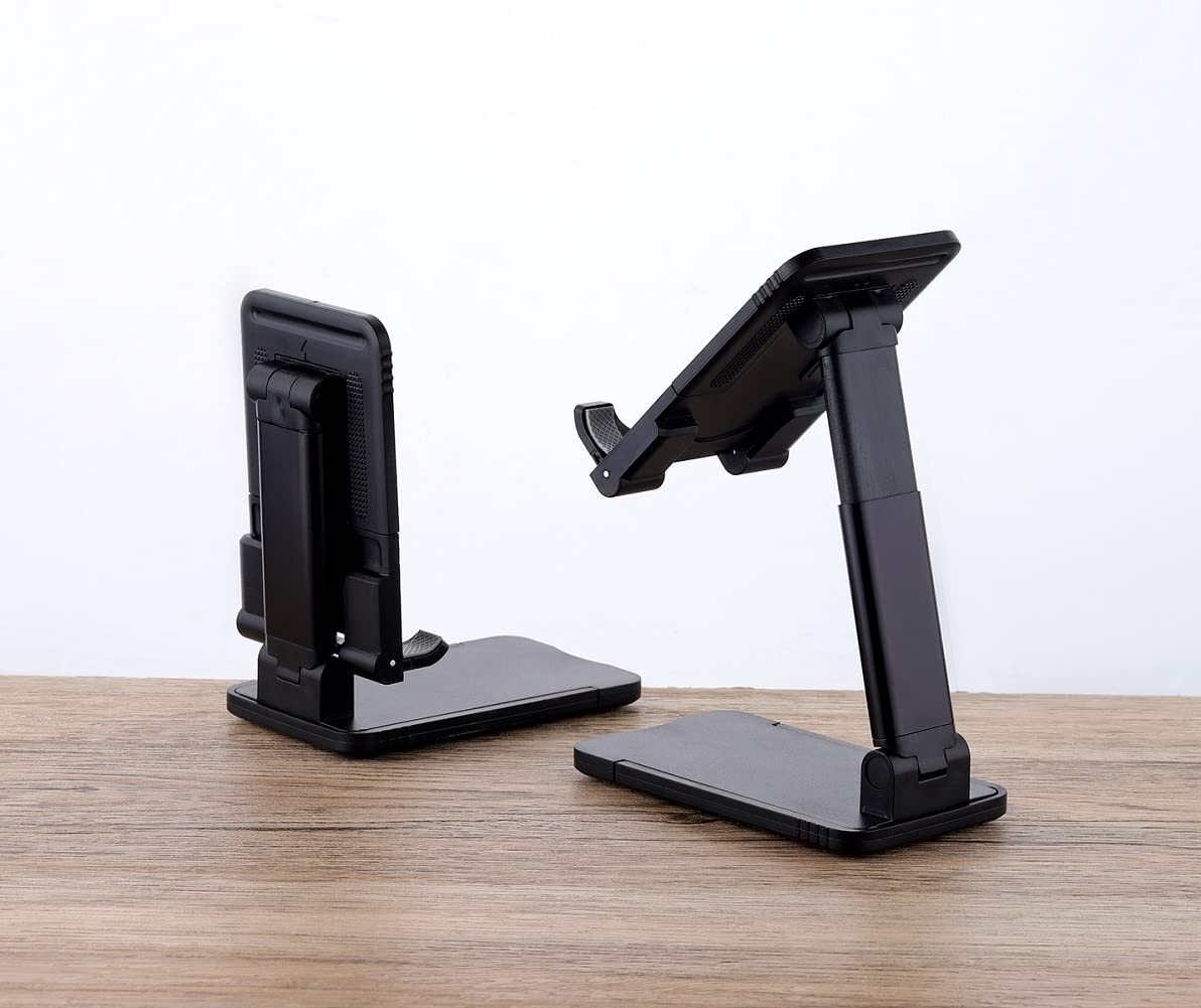 Adjustable Cell Phone Stand, Angle Height Adjustable, Foldable Desk Cell Phone Stand Holder, Phone Dock Cradle Compatible with All Mobile Phones, iPhone, Switch, iPad, Tablet (Black)