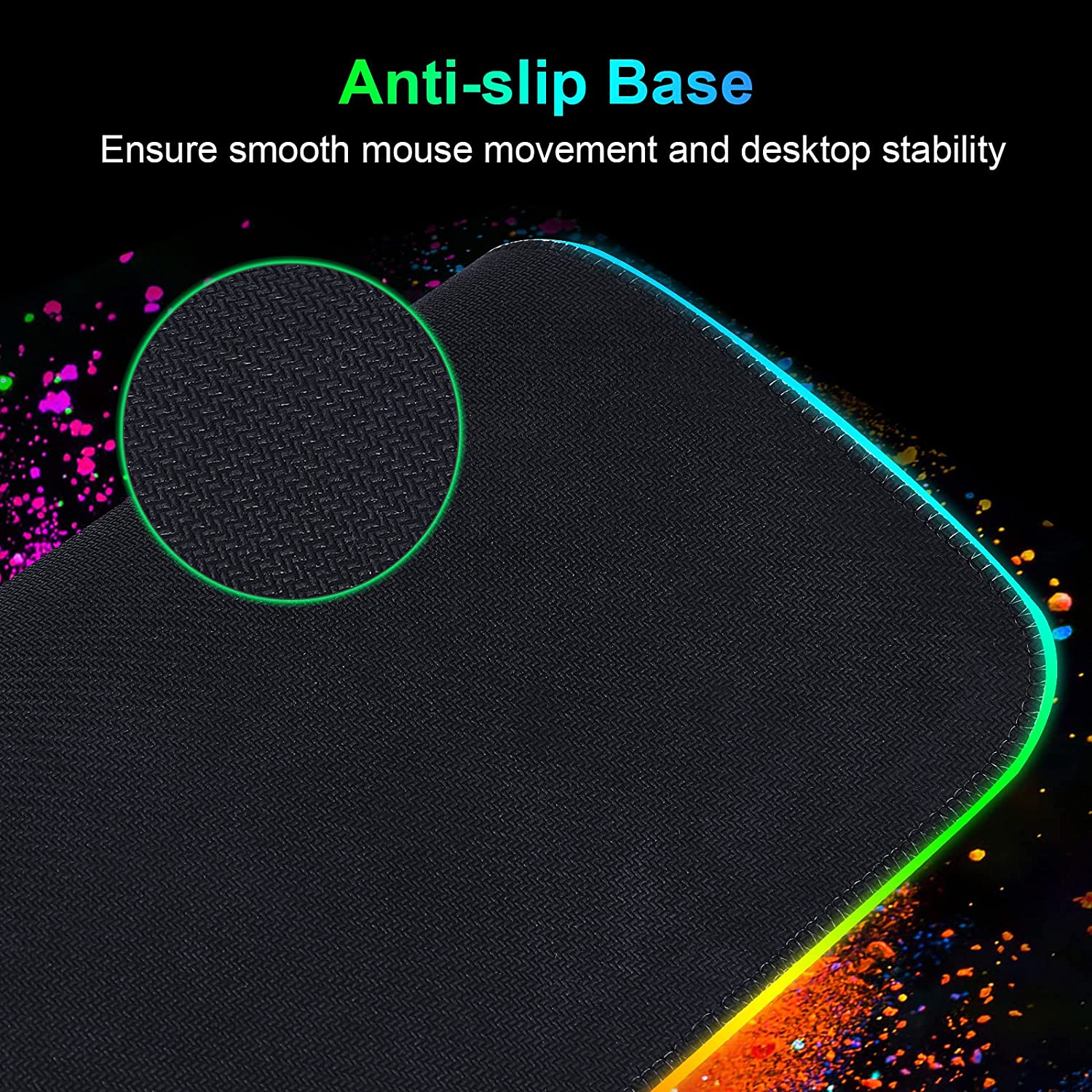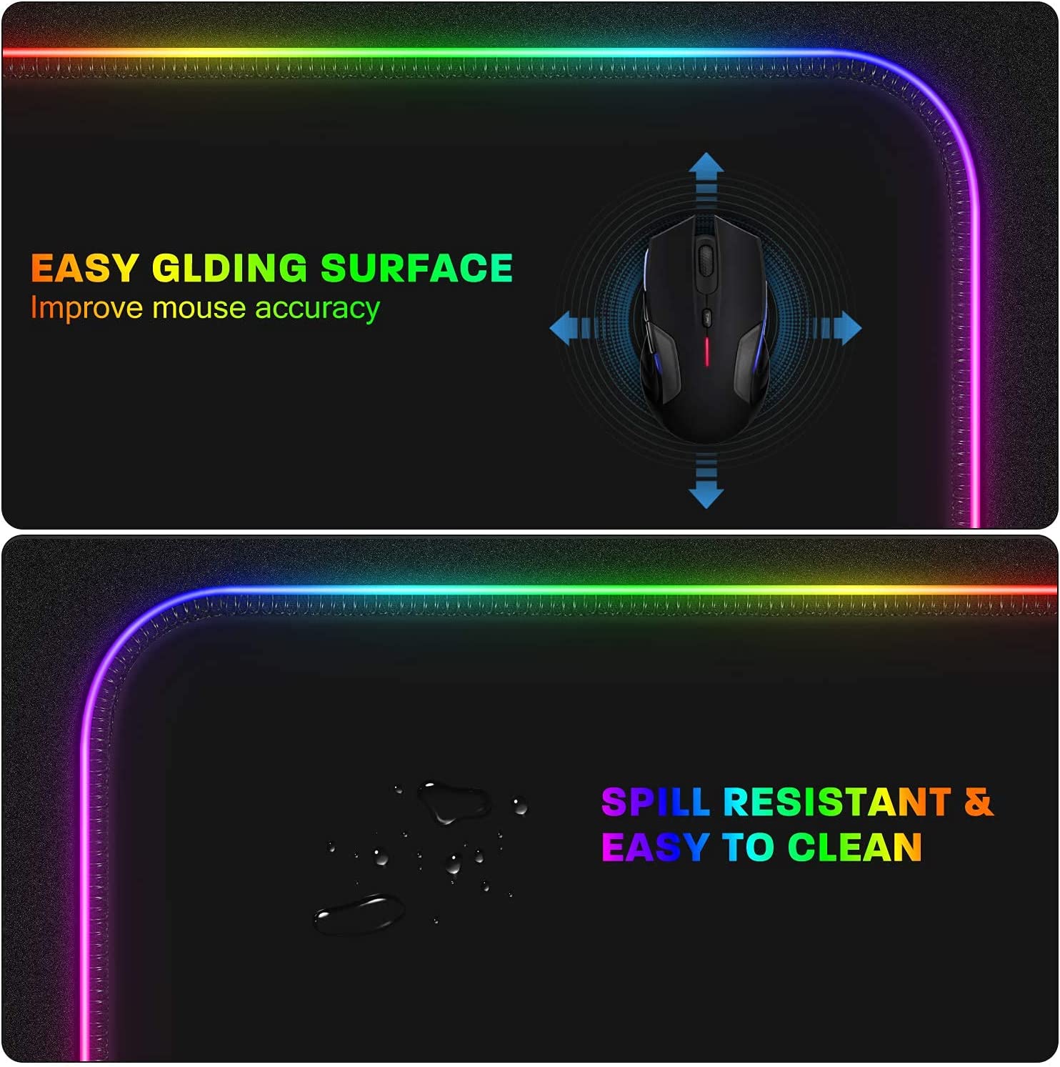【 Ultra-Smooth & Waterproof Surface】 The RGB Gaming Mouse Pads design with superfine fiber braided material which are micro-textured, smooth surface, precise navigation without warped, so the mouse could moves seamlessly across the pad and then the cursor follows the mouse precisely. Waterproof design, even if you sprinkle water, tilt the mouse pad to pour out the drops.