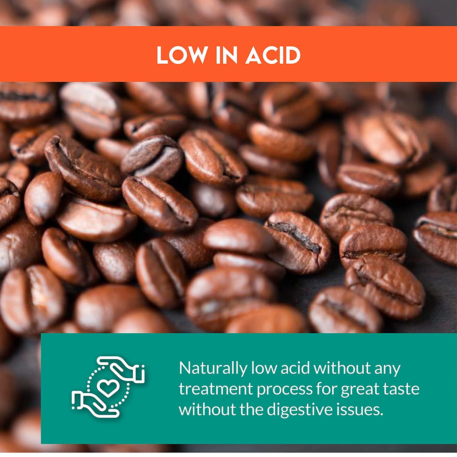 • WHOLE BEAN COFFEE WITH LOW ACID — Whether you’re looking for cold brew coffee grounds or something for the coffee pot or pour over, these beans are ready for you to prepare however you’d like. With a pH level similar to rainwater and a rich antioxidant level, this bag of whole beans will treat you with as much care as you treat your coffee prep.
