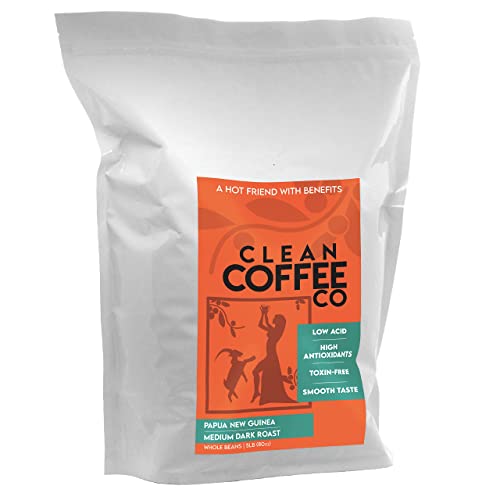 Clean Coffee Co. | Low Acid Coffee, 5lbs Bag Whole Bean Coffee | Medium Roast from Papua New Guinea | Toxin and Mold Free, Antioxidant Rich, Smooth Taste for Espresso, French Press, or Iced Coffee