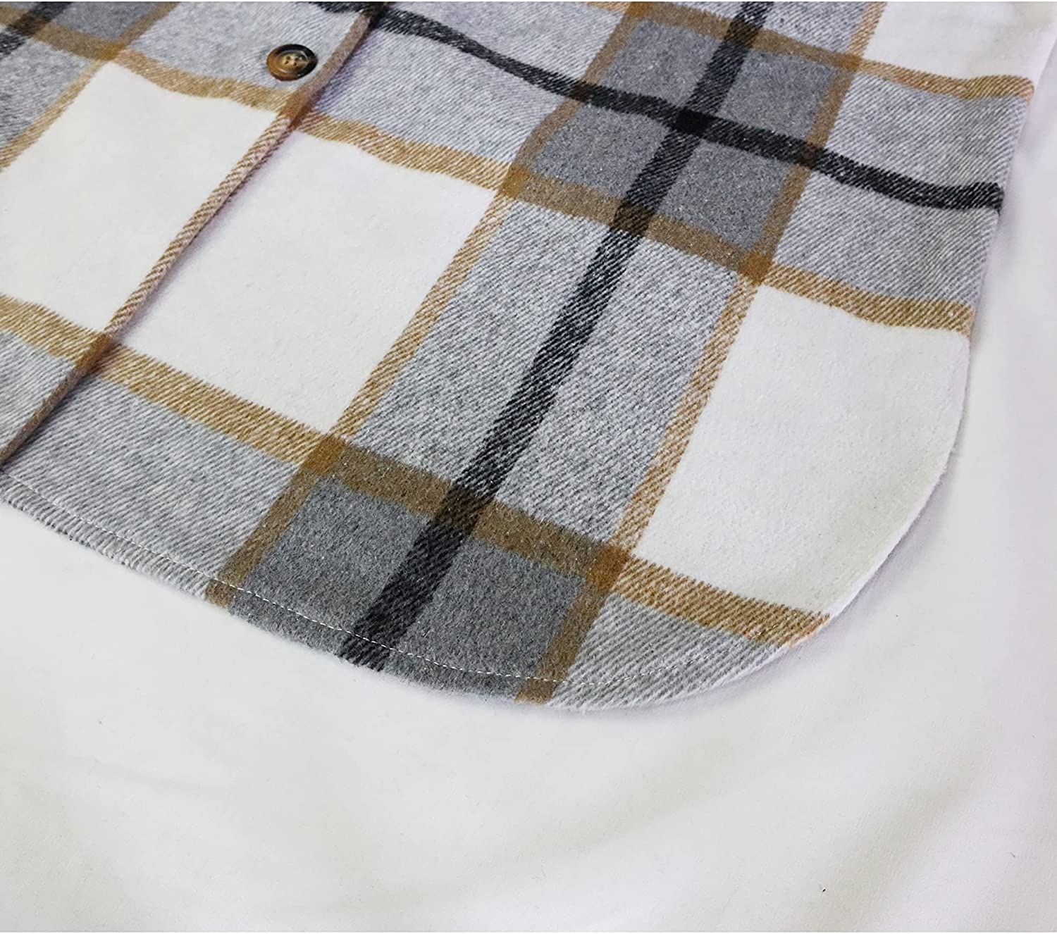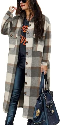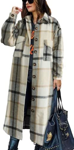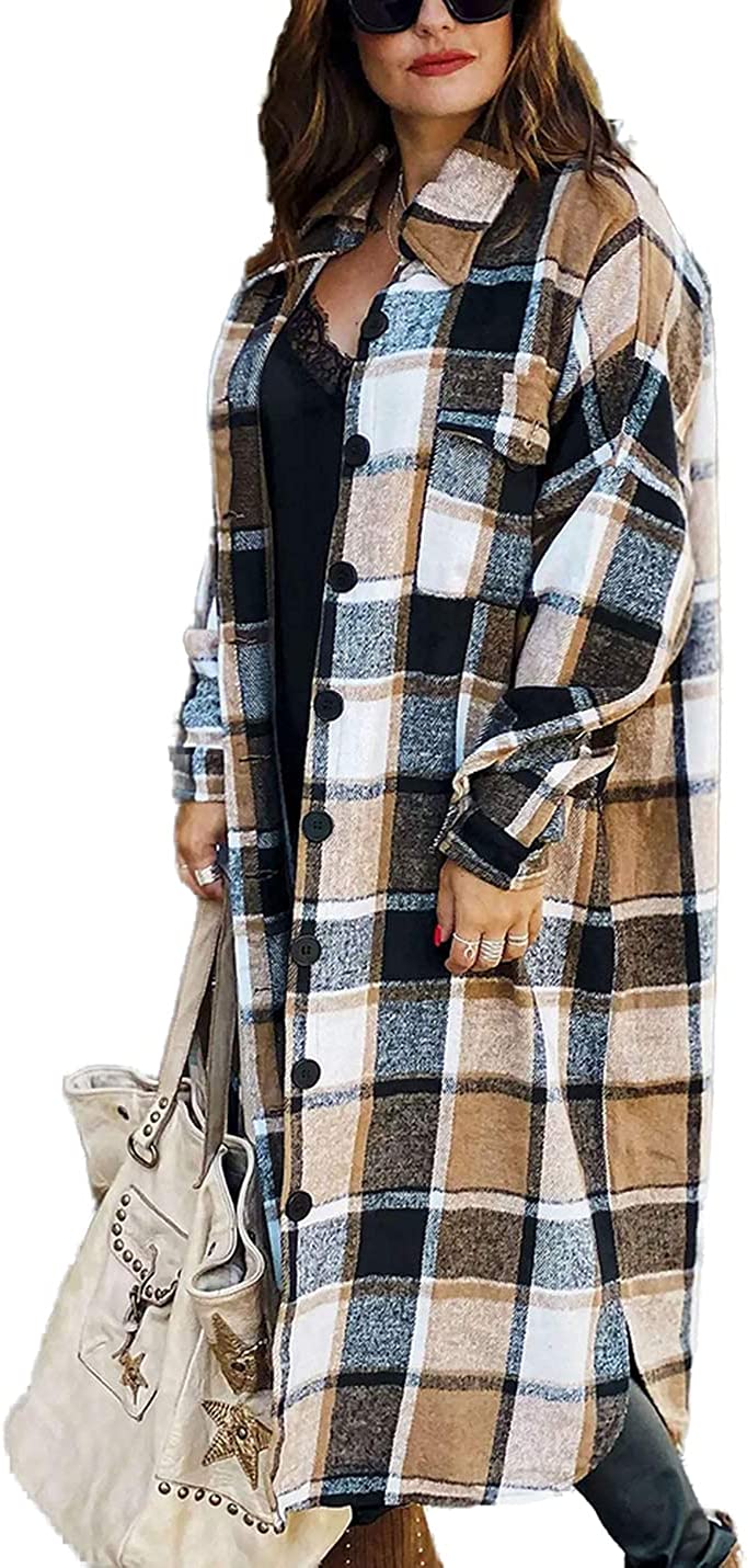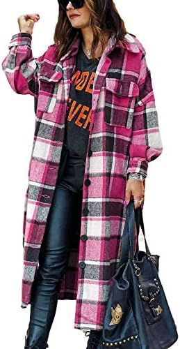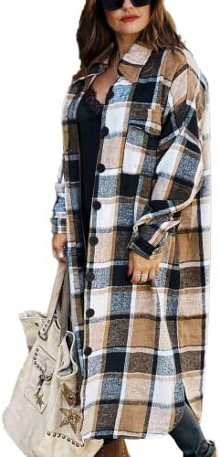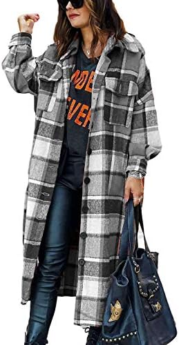 Omoone Women's Lounge Lapel Button Up Long Sleeve Plaid Long Shirt Jacket Shacket