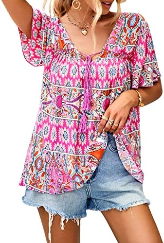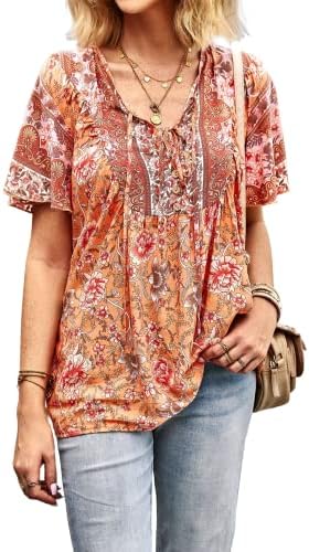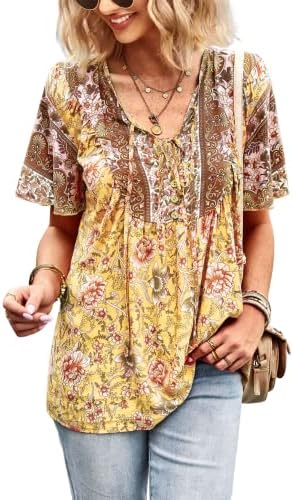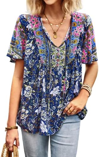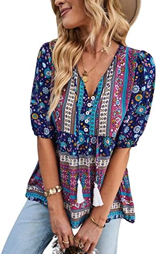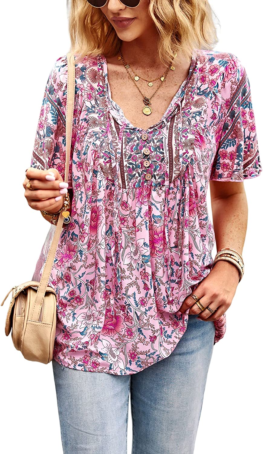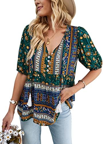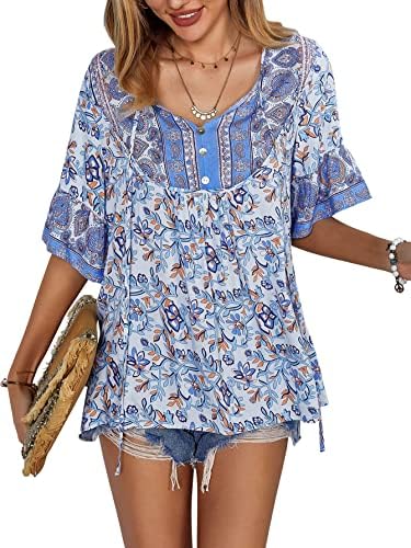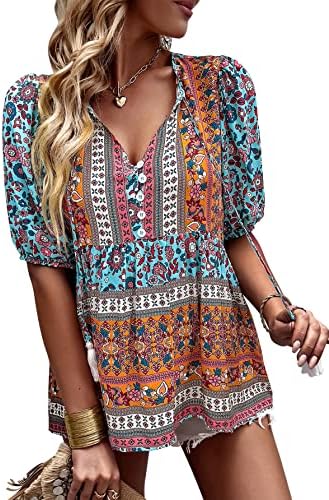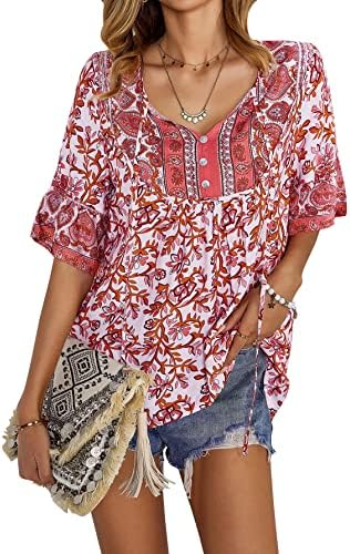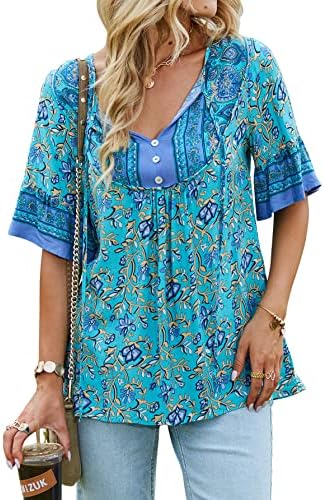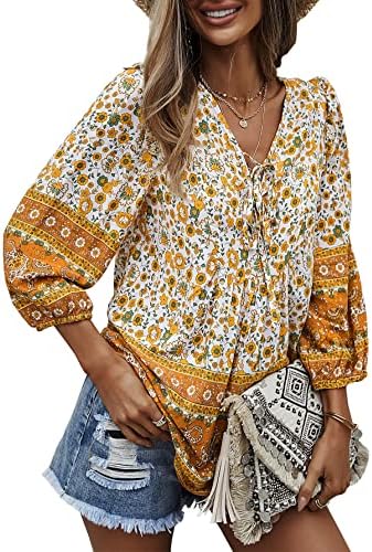 Unique Design: Fashion v-neck and sweet 3/4 short sleeve design, make you look very stylish and fashion, the floral print loose casual style will make you look more energetic.