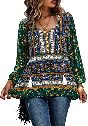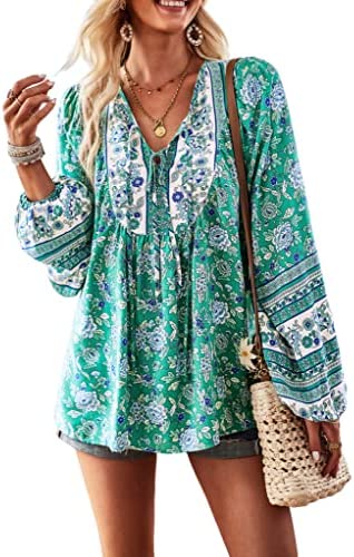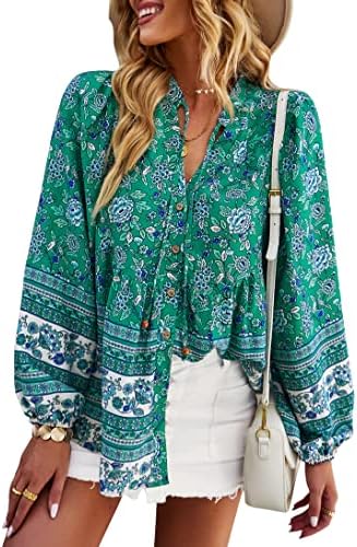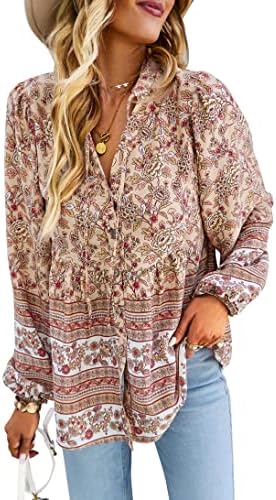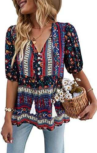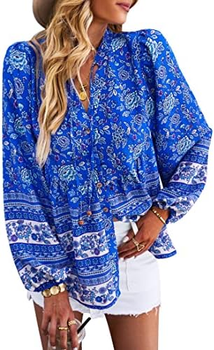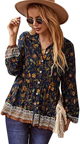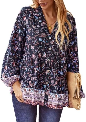 Features: Fresh and stylish style, sexy v-neck, 3/4 sleeve, elastic cuffs, loose fit, floral print top, decorative buttons, flowy hem, super cute.