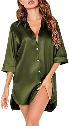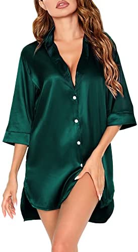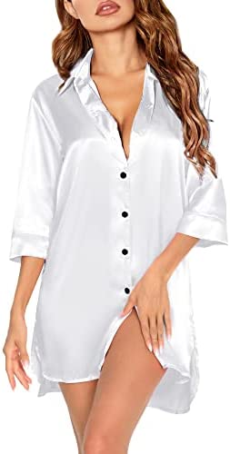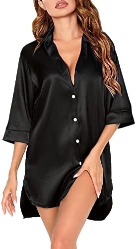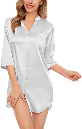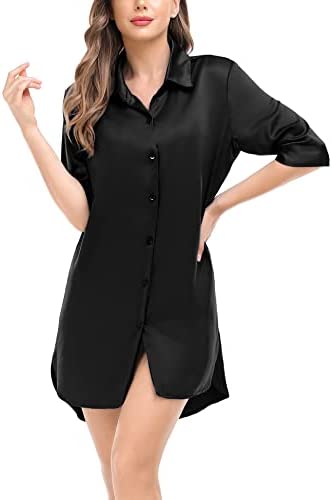 ?SILKY SMOOTH FABRIC:The womens satin night shirts made of high quality fabric,Which is soft,lightweight yet durable,skin friendly and breathable,keeping you cool and comfortable in any season as you sleep or relax