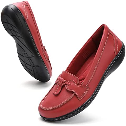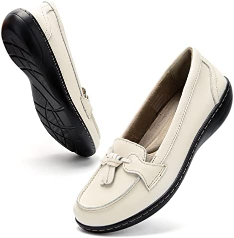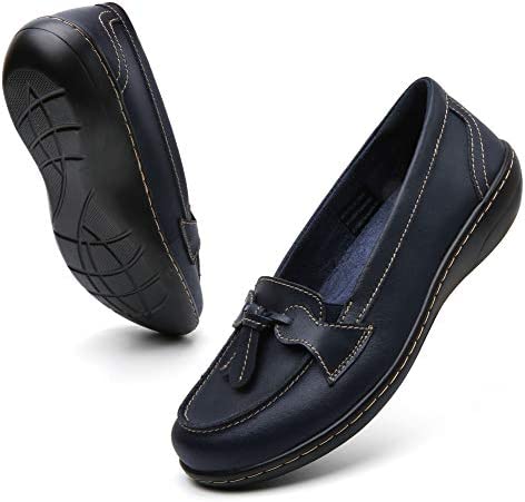 • [PREMIER MATERIALS]: Loafers for women comfortable are made of genuine luxury split leather upper with classic fine stitching. Cowskin leather lining and memory foam insole. Lightweight and flexible rubber sole.