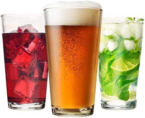 PREMIUM BEER GLASS: Classic clear glass tumblers. Perfect beer glass, also this set is great all-purpose drinking glasses for water, cocktails and all beverages!