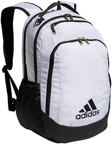 Carry everything you need for practice or the gym in this adidas backpack. the sturdy backpack has a main compartment and a separate ventilated shoe garage for wet or muddy items. the inner lining is easy to wipe clean with soap and water.