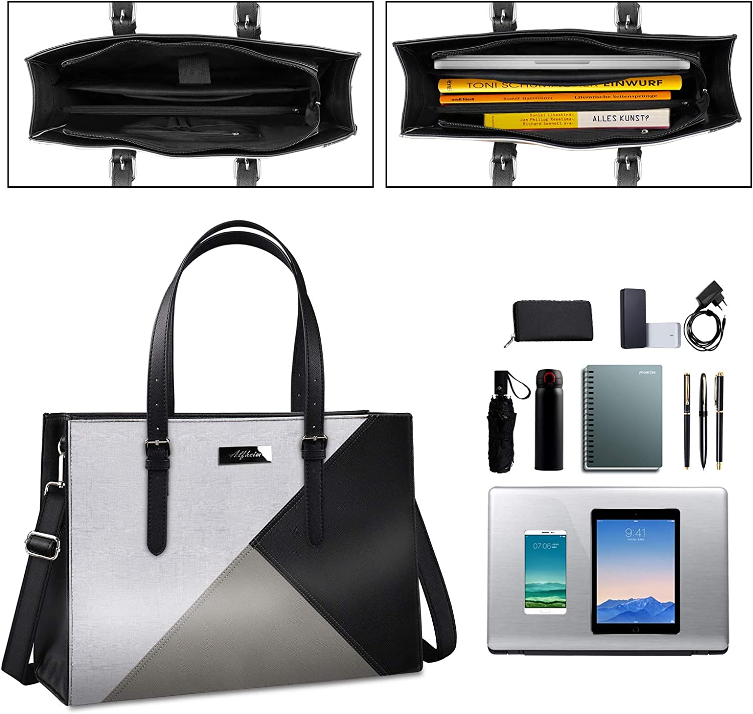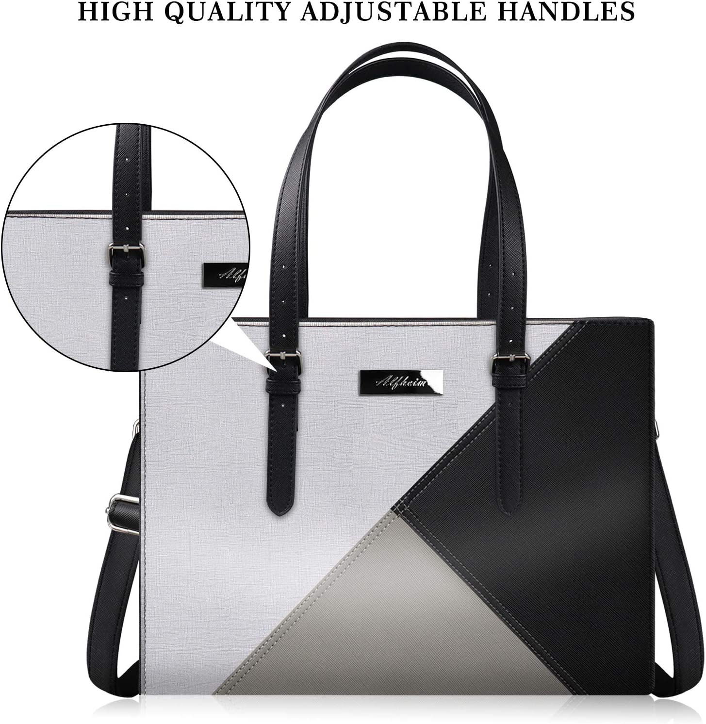 Alfheim Laptop Bags for Women 14 inch Leather Briefcase Large Business Shoulder Tote Bag Ladies Handbag for Office School Travel Work