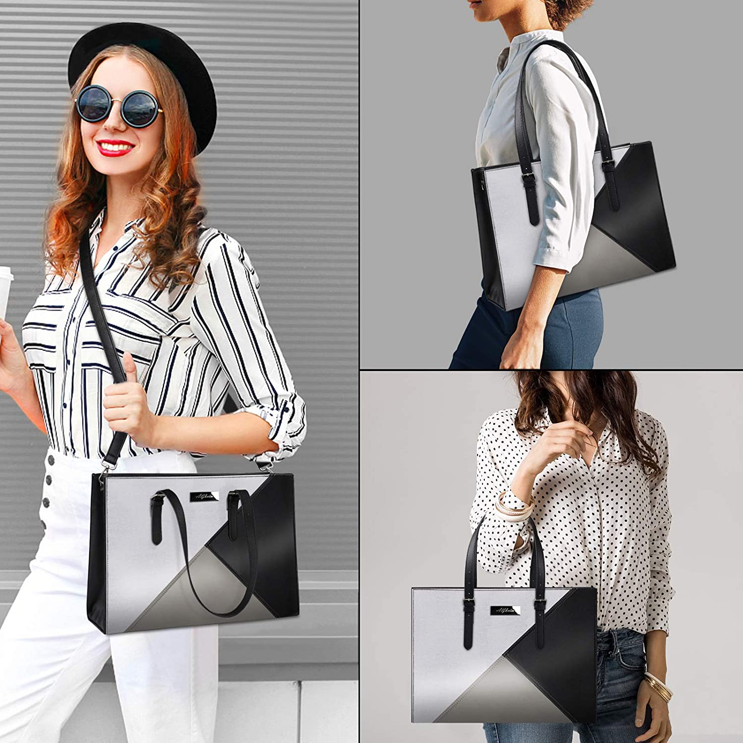 • 【Multifunctional Handbag】With a detachable and adjustable shoulder strap, this women's laptop handbag is not only a laptop bag or tote handbag but also a shoulder bag or even messenger briefcase bag. It can be worn with all different kinds of outfits, definitely meet your demands for any occasions such as work, business trip, meeting, college, shopping or daily use.