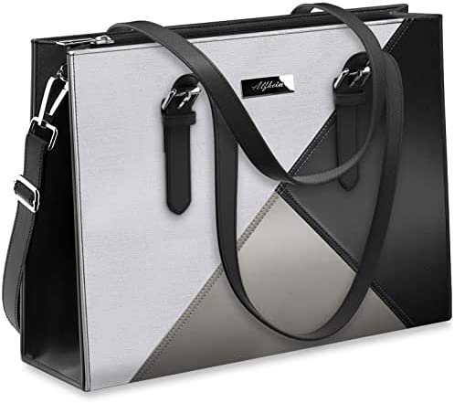 • 【Premium Material】Alfheim laptop bag is made of premium PU leather and polyester lining. High-quality leather makes laptop handbags for women water-repellent, scratch-resistant and more soft and durable. Adopting a sturdy top handle zipper and professional padded pocket which keep your laptop and essentials safe. The fashionable stitching color makes this large business woman bag become a forefront of fashion trends.