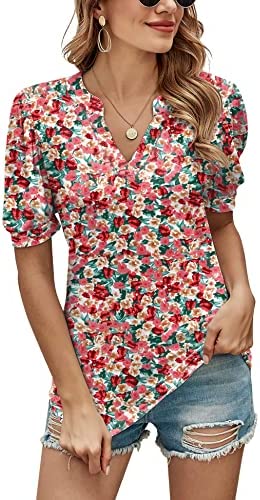 Soft and Breathable Material: Made with premium quality fabric, the short sleeve blouses are soft, stretchy, and lightweight, providing you with a comfortable and enjoyable wearing experience.