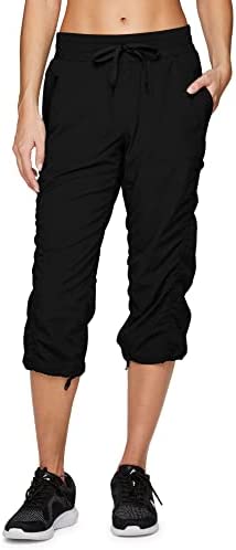 RBX Active Women's Fashion Lightweight Stretch Woven Body Skimming Drawstring Capri Pant