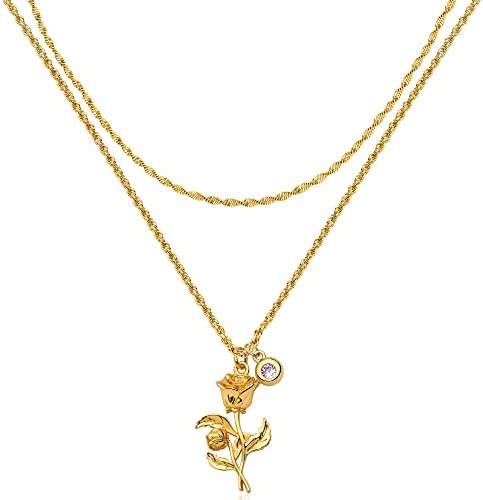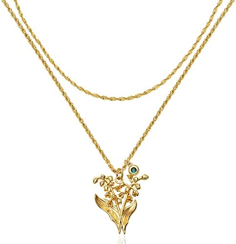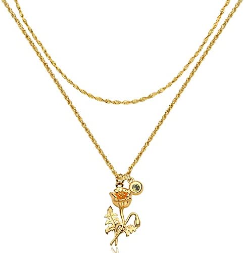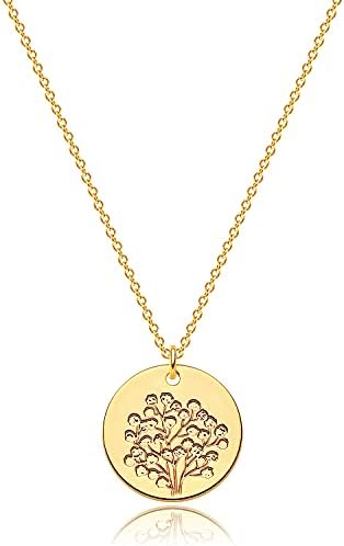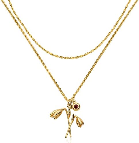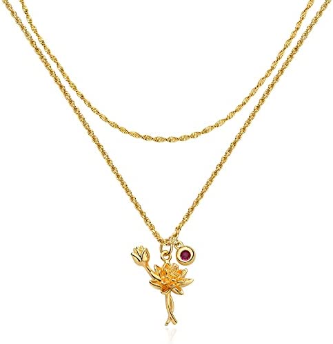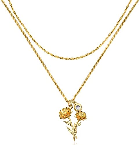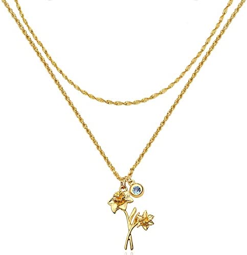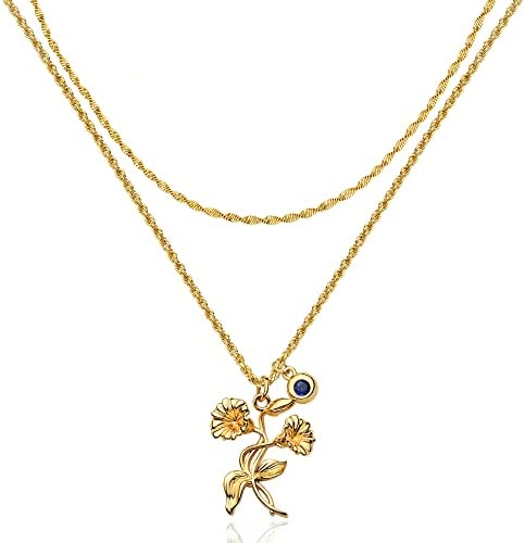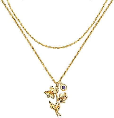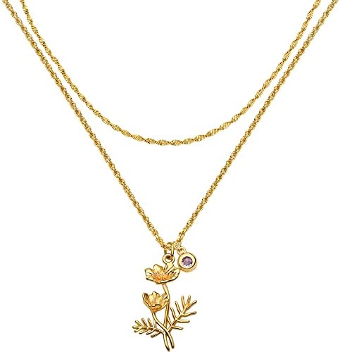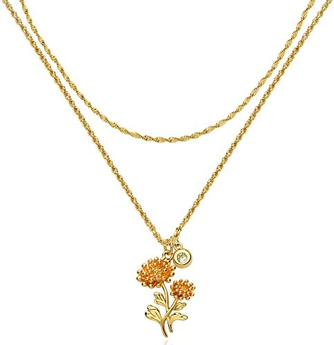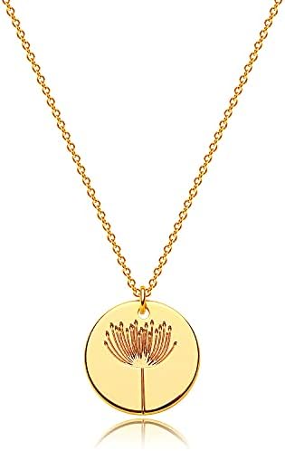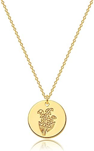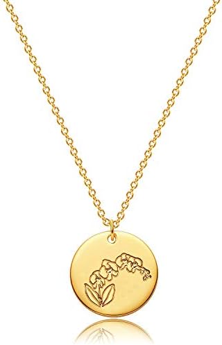 MEVECCO Birth Flower Necklace 18k Gold Engraved Custom Floral Pendant Necklaces Dainty Birth Month Flower Disc Charm Hand Stamped Flower Disk Necklace Personalized Jewelry Birthday Gift for Her