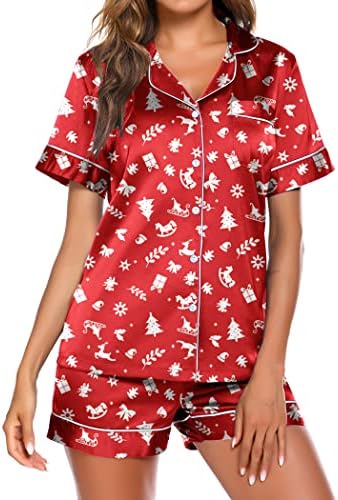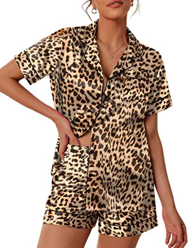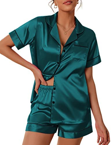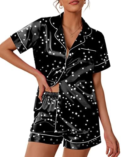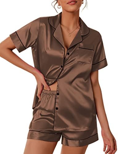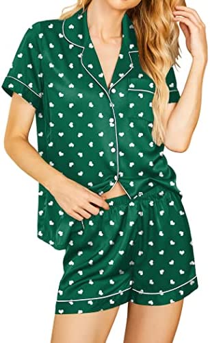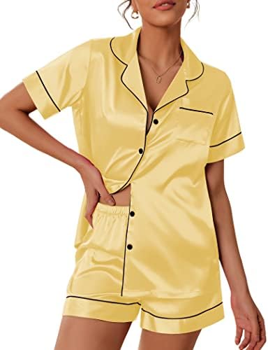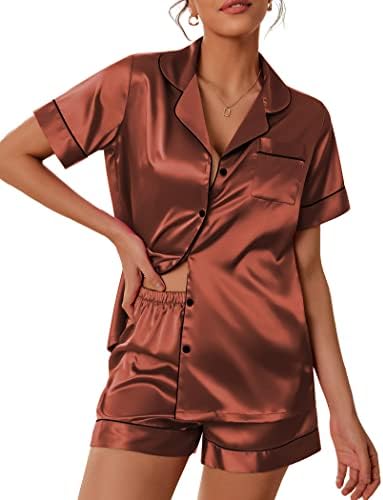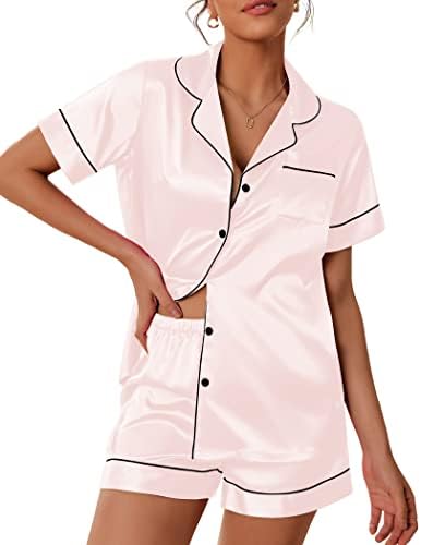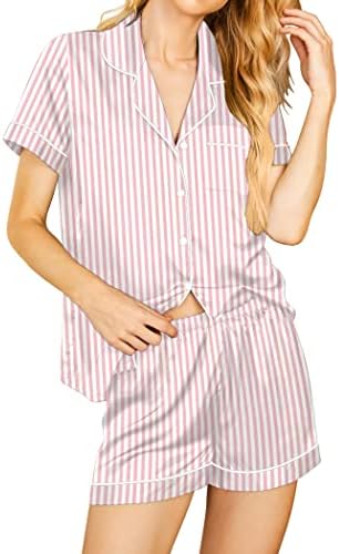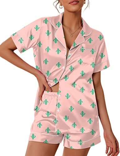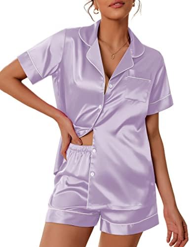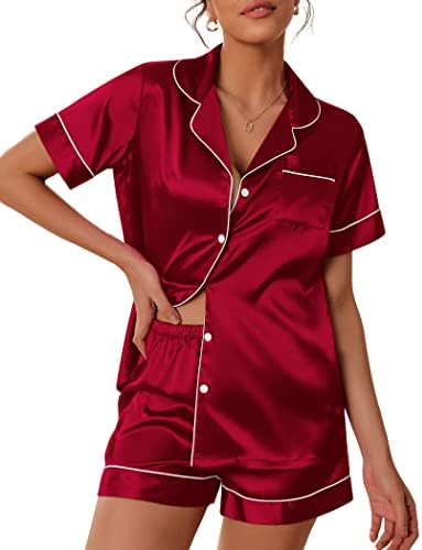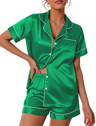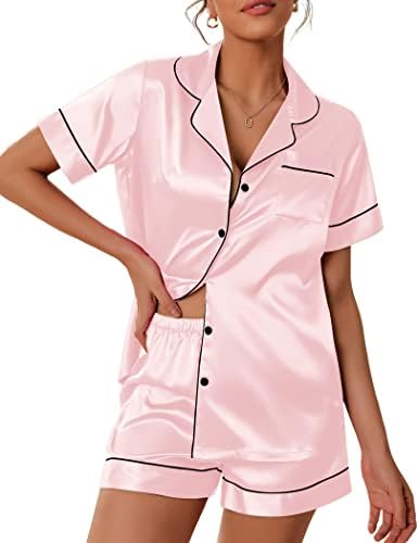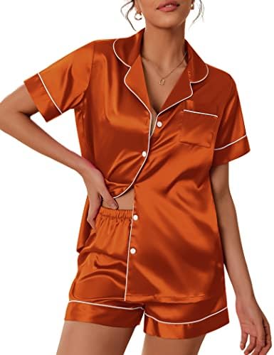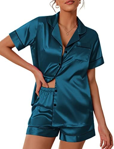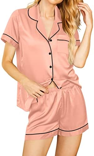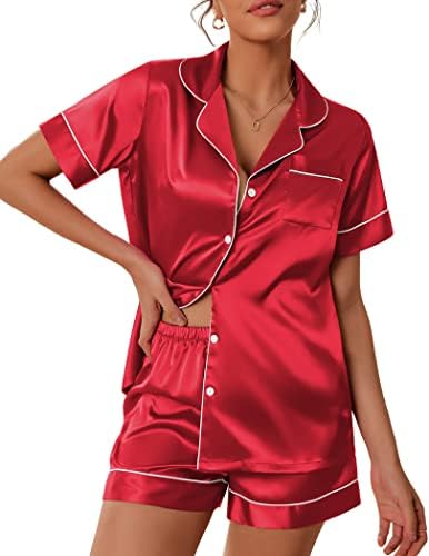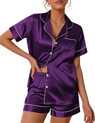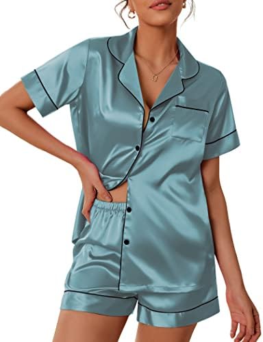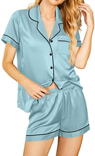 Pajama Top:Short sleeve sleepwear with notch collar,button front pajamas shirt and one chest pocket design.Lightweight and Skin-friendly silk pajamas for women.Great for sleeping,casual wear or lounging around the house or yard all day