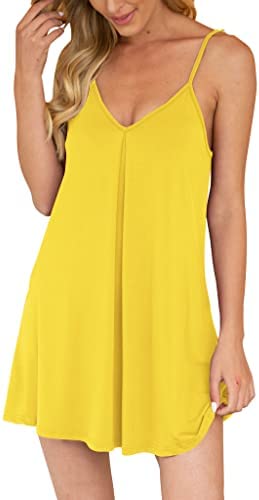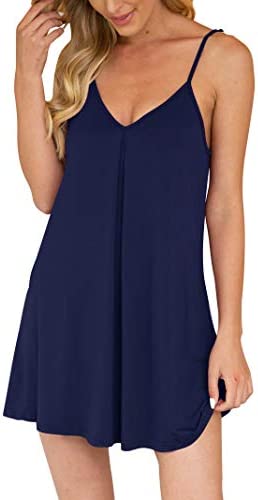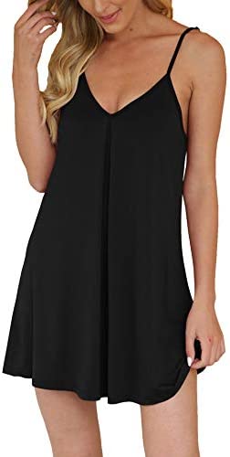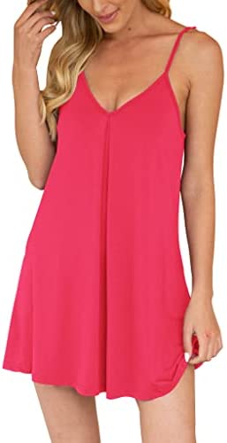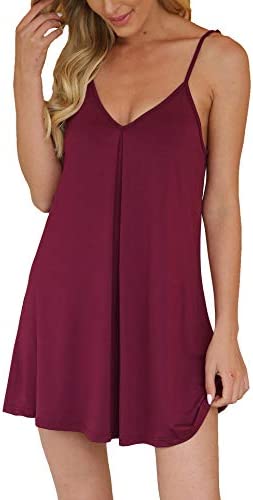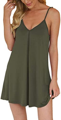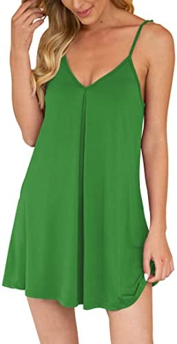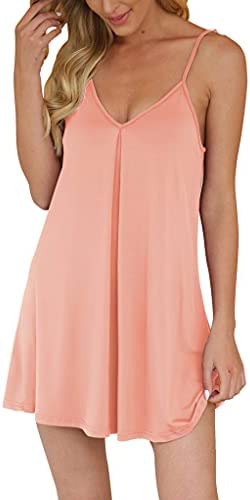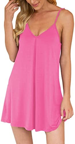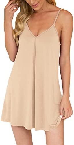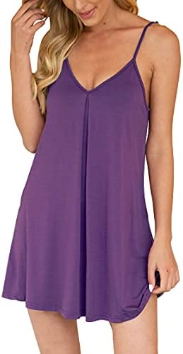 AUHEGN Nightgown for Women Loose Sleepwear V Neck Pajama Dress Soft Nightshirt Sleeveless Nightdress Chemise