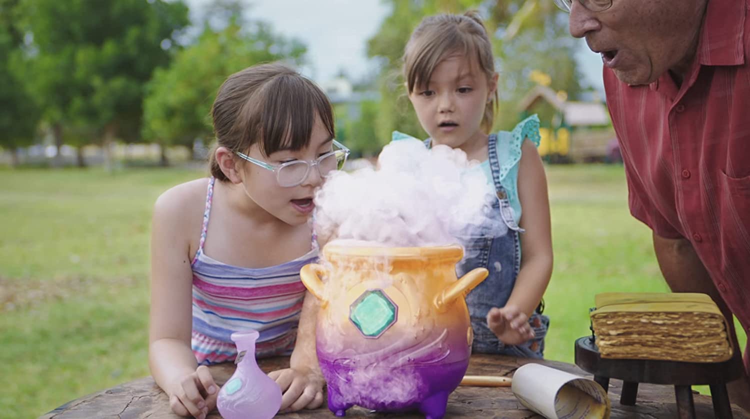 Follow the spell by adding the magical ingredients to your Cauldron one step at a time, waiting for the green light and tapping 3 times…when the potion is finished watch as REAL MIST begins to rise from the Cauldron