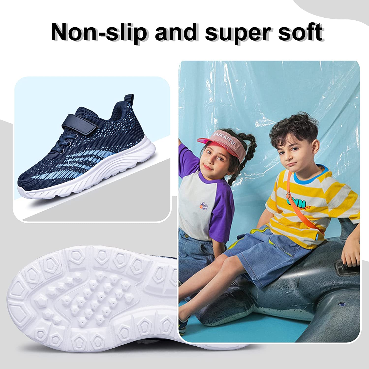 NON-SLIP AND DURABLE SOLE: YHOON kids running shoes’ MD sole can effectively prevent slipping, combined with shock absorption technology, protecting kids from hard object shock absorption.