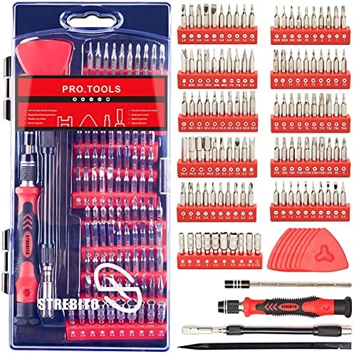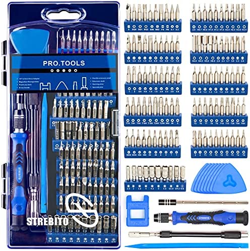 - 【Variety & Versatility】This screwdriver set has 110 different bits(Phillips, Flat Head, Torx, Torx Security, Pentalobe, Hex, Gamebit, etc), which is useful for laptop, PC building, cell phone, tablet, MacBook, iPhone, iPad, game consoles/controller, Ring doorbell, sewing machine, HVAC, knife and more. This is the toolkit every DIYer, fixer, hobbyist, and professional needs to tackle any job, also a decent gift for your families, friends, colleagues, etc