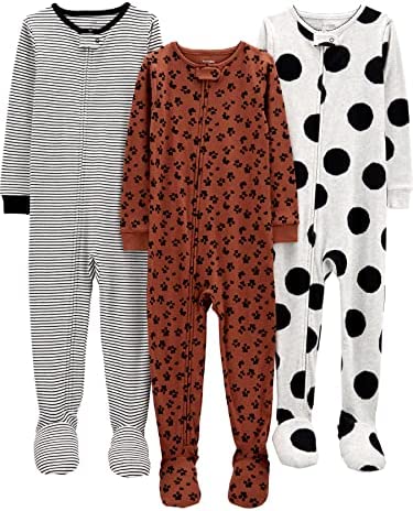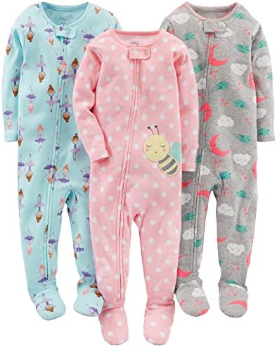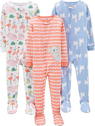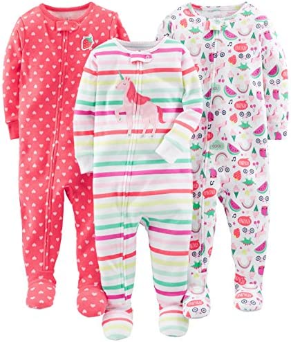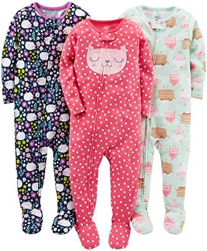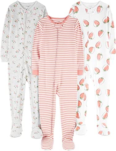 Simple Joys by Carter's Toddlers and Baby Girls' Snug-Fit Footed Cotton Pajamas, Pack of 3