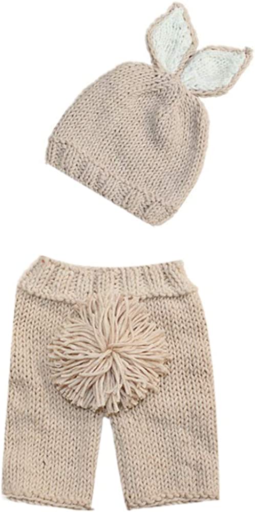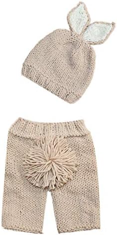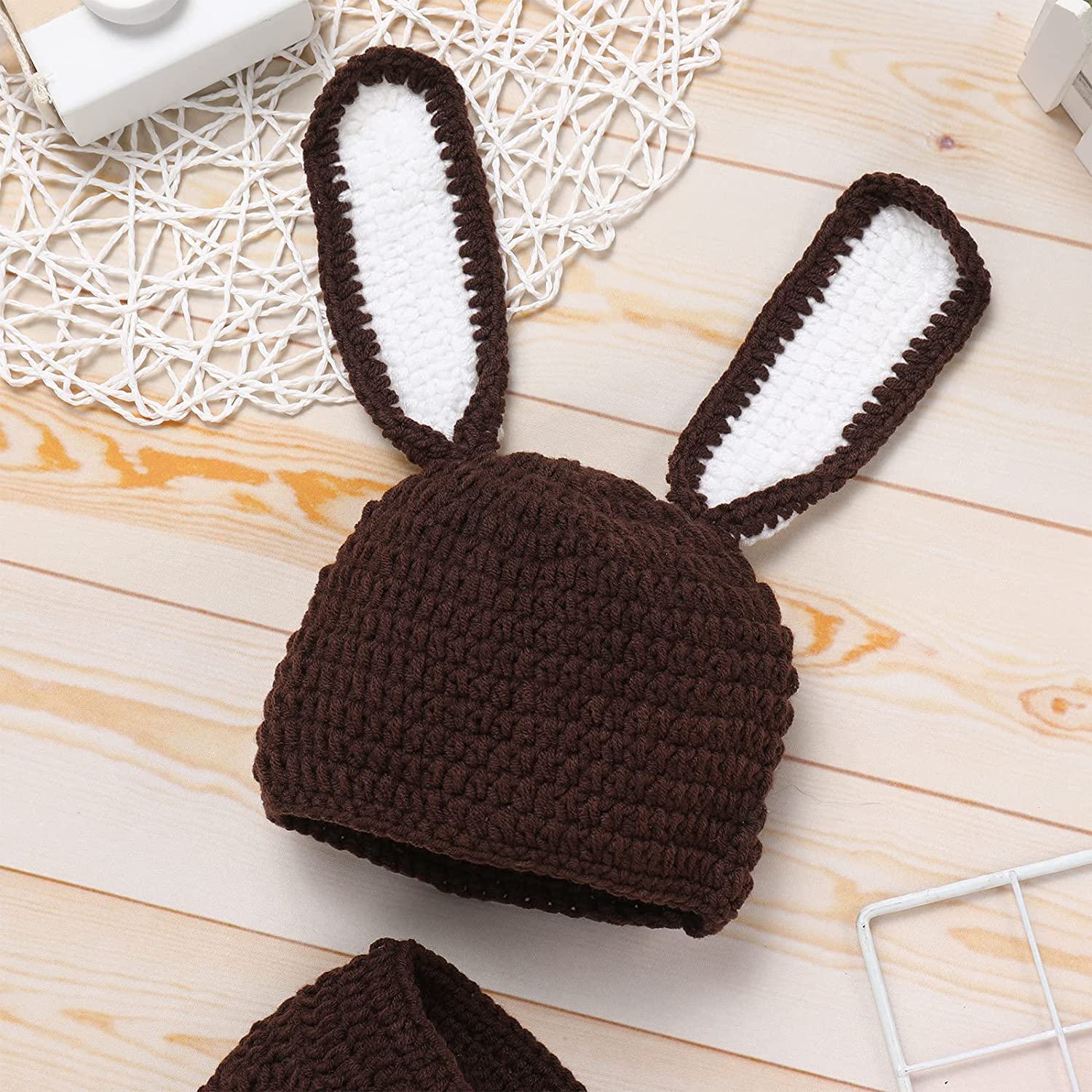 • ♛【Crochet-knit Bunny Beanie Hat】Cute, soft and fully hand made baby knit crochet costumes, 1st Easter bunny newborn pictures outfit set. Newborn baby boy girl Beanie hat with cuteness animals rabbit ears design, great for spring prop, newborn pictures, first pictures. Super cute Halloween, Easter, or newborn picture idea, take pictures in an Easter basket, Happy Easter pics of newborn bunny outfit, Great newborn photography set as Easter gifts first pictures, baby-shooting for your little one;