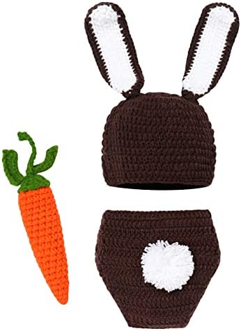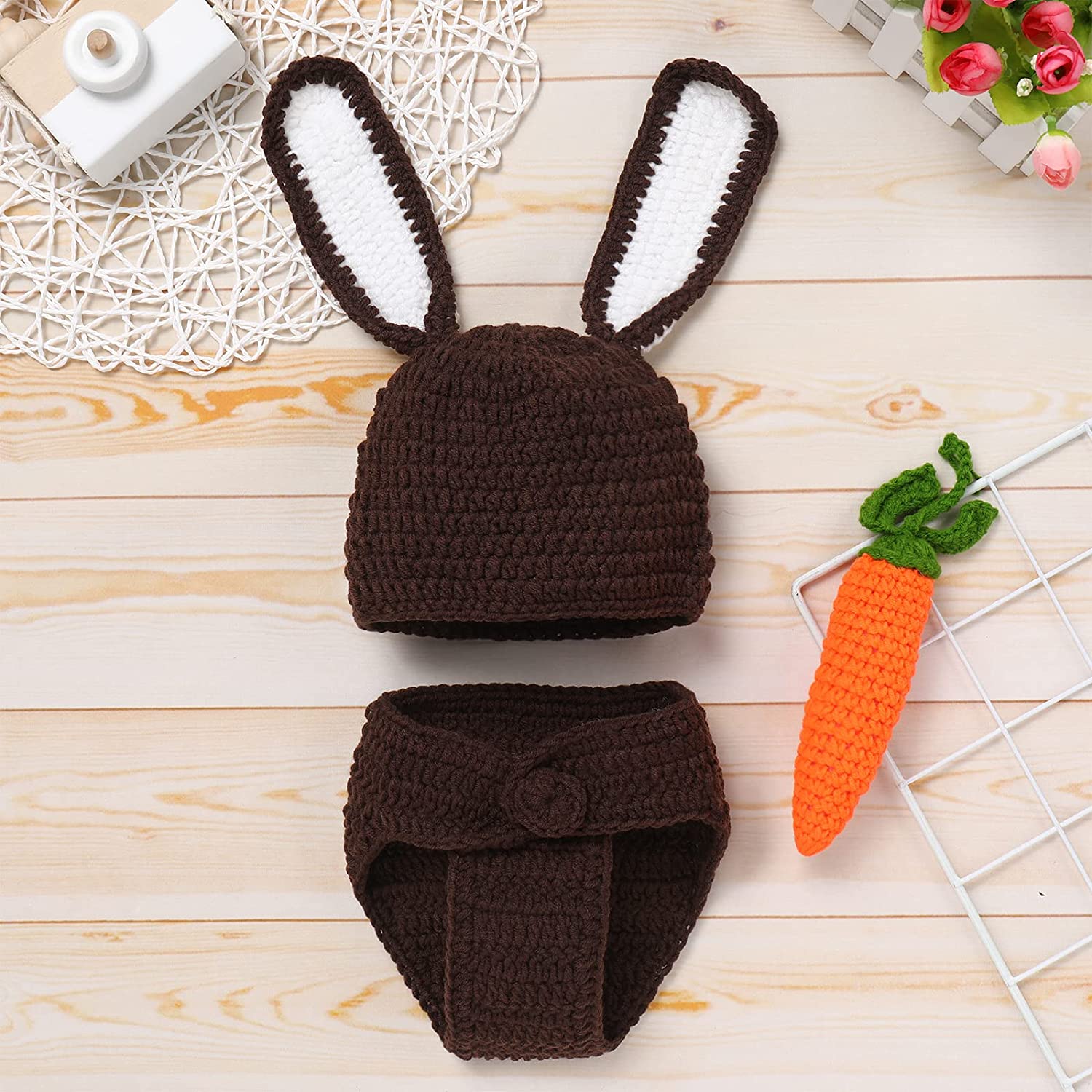 IMEKIS Newborn Baby Easter Bunny Photography Prop Costume Crochet Knit Hat Diaper Carrot 1st Birthday Outfit Set for Boy Girl