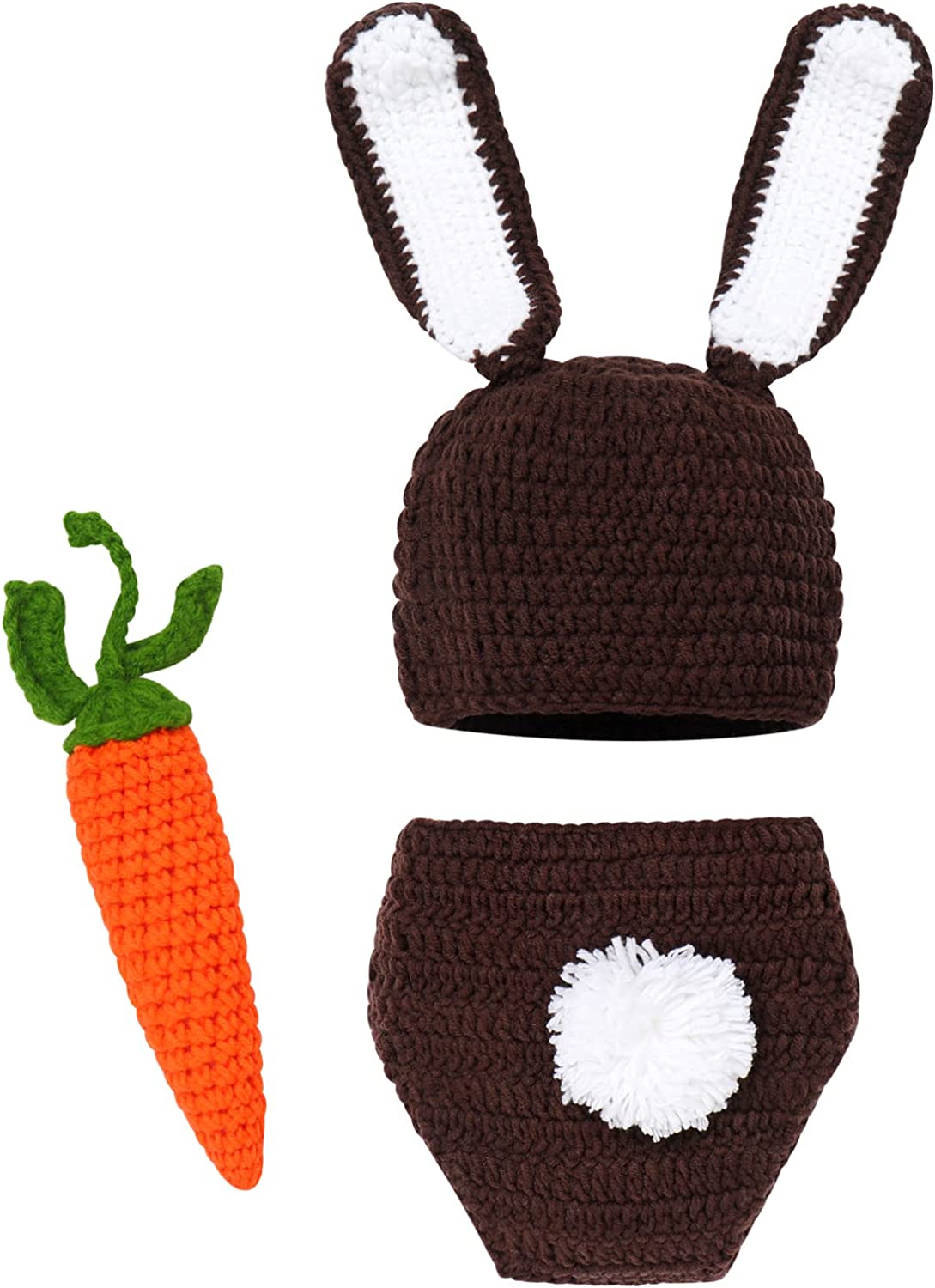 • ♛【Easter Bunny Photo Shoot Costume】Newborn baby boys girl 1st Easter bunny photography props costume, fancy photo shoot outfit set includes Diaper Pants + Beanie Hat with or without Carrot. Super cute striped crochet-knit baby boy girl outfit set for first Easter photo props. Adorable rabbit newborn boy bunny outfit 1st Easter photoshoot outfit dress up clothing, great as newborn party costume, newborn photos, cake smash 1st birthday outfit set, Christmas outfit, playwear, baby photography prop;