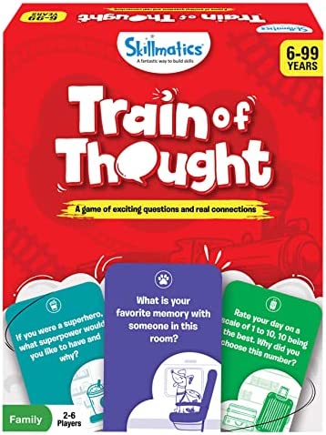TRAIN OF THOUGHT CARD GAME - Train of thought is the perfect parental tool to approach playtime and family time. This highly engaging, age-appropriate game of exciting questions & fun challenges can be enjoyed by all ages.