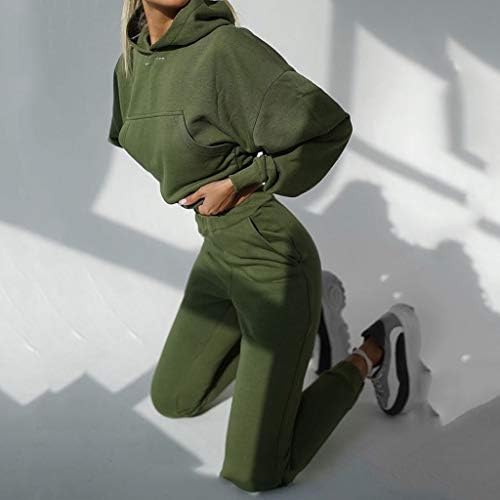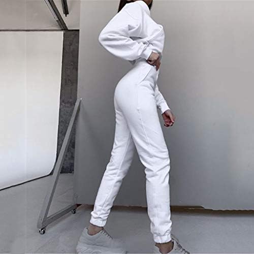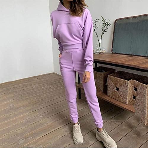 YUTRD ZCJUX 2pcs Long Sleeve Crop Top Hoodies Women Two Piece Outfits Stacked Pants Fashion Clothing Set Tracksuit (Color : B, Size : Medium)