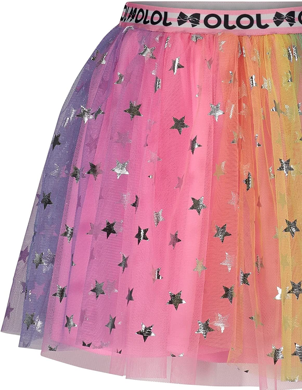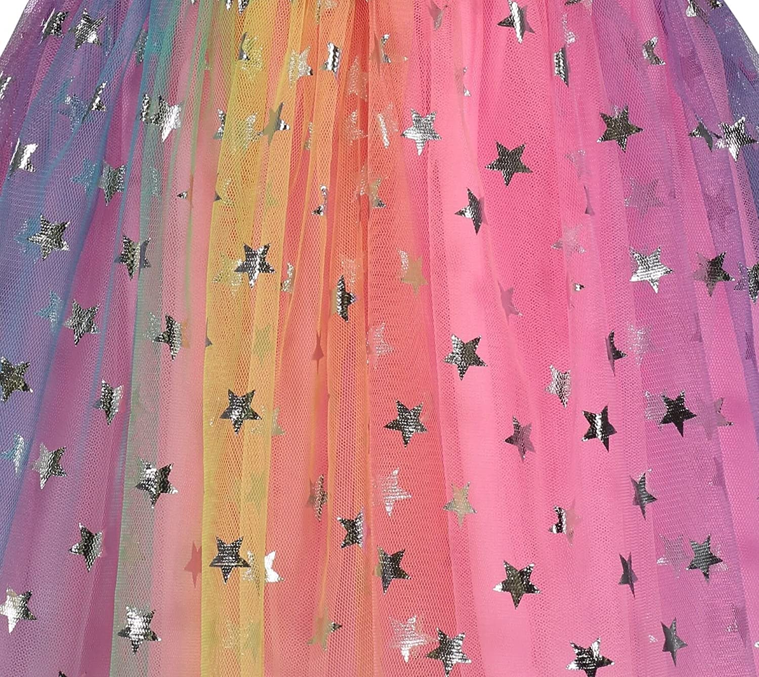Tulle skirt; Mesh top skirt; Awesome screenprint design with silver foil; Elastic waist for better fit