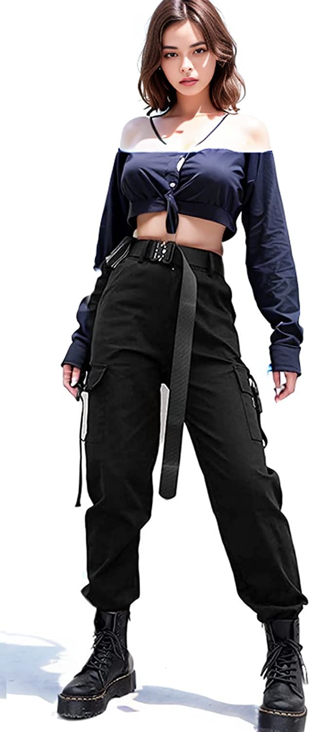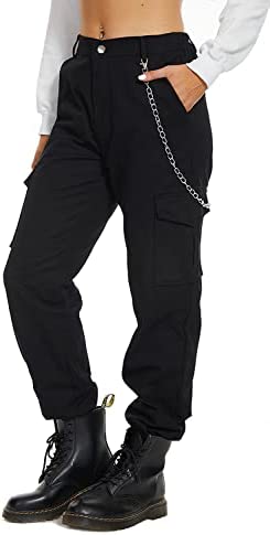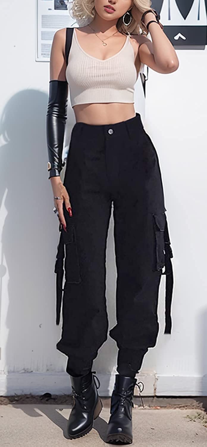 VANGULL Women's High Waisted Jogger Pants Casual Flap Pocket Solid Outdoor Cargo Pants Black