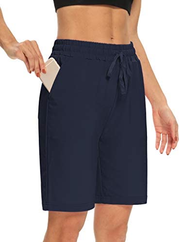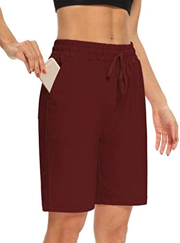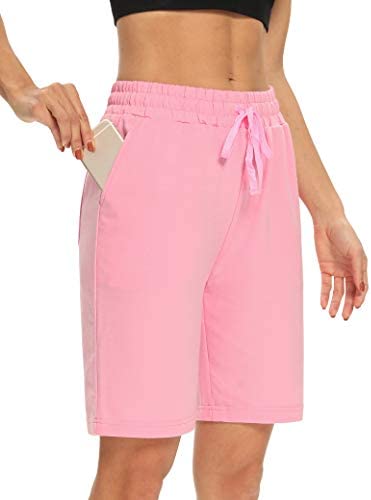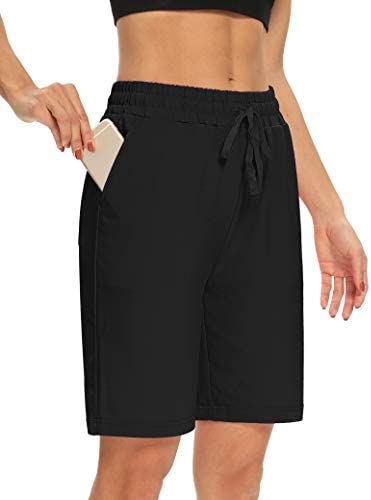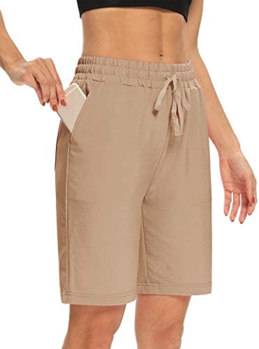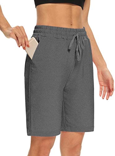 Drawstring shorts: The waistband is thick and wide so it doesn’t cut into your waist or the waist roll down. Comfy shorts with pockets fits really well and holds its shape, not to be tight on your butt and have a comfier lounge fit. Pajama shorts for women, bermuda shorts, jersey shorts, cotton short pants, knit shorts, harem shorts pants for women