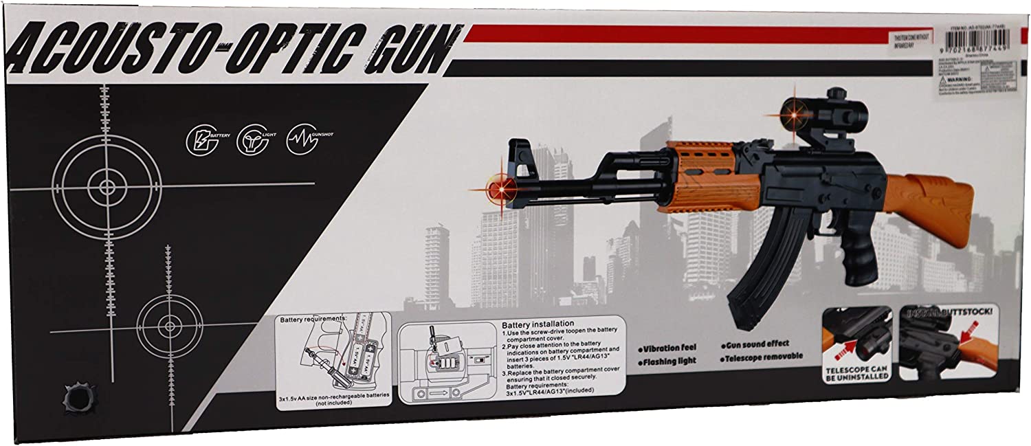 Cool Vibration and Firing Sound Effect. JOYSAE’s AK-7744B gun toy vibrates and make shooting sound effect while pulling the trigger. This electronic sound effect simulates both firing and loading bullets. Brings you right into the battle field.