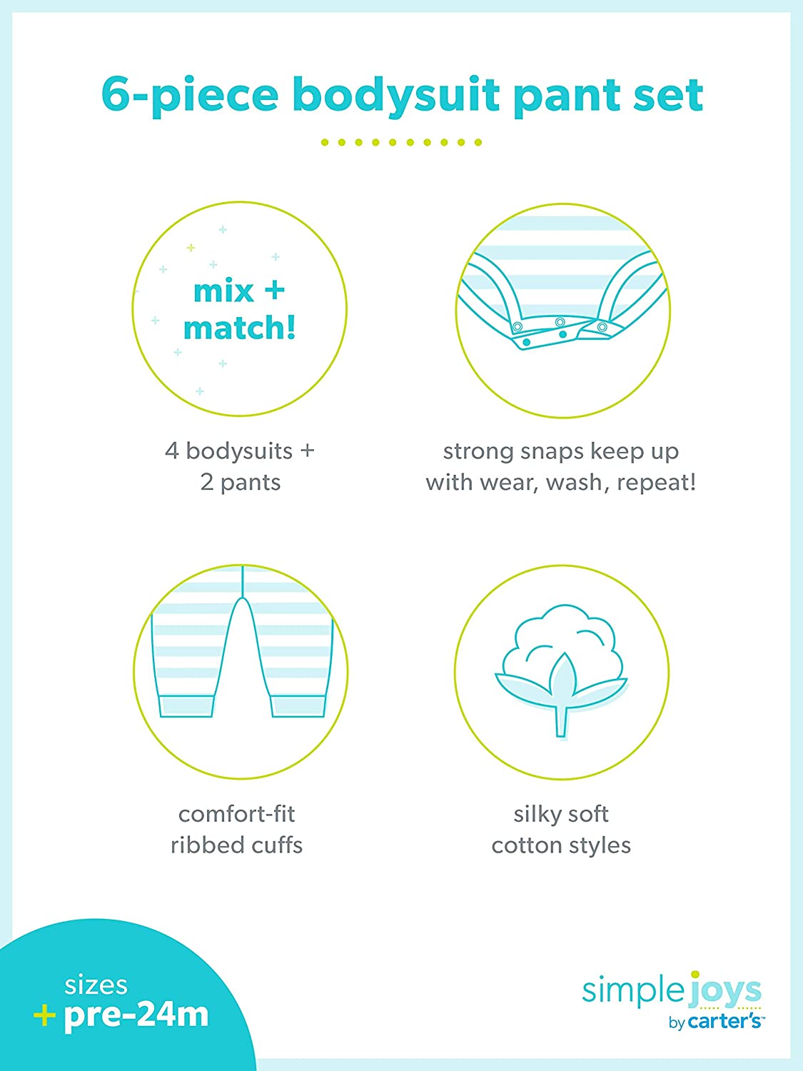 Simple Joys by Carter's Baby Boys' 6-Piece Bodysuits (Short and Long Sleeve) and Pants Set