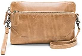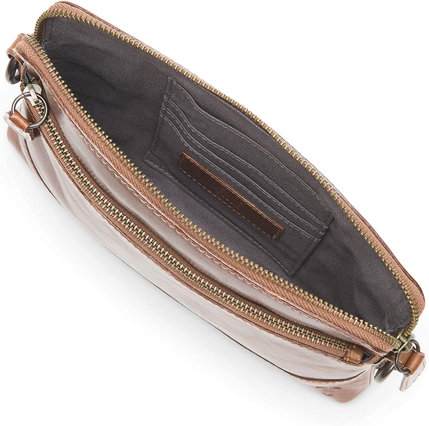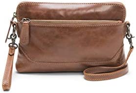 Antique pull up leather crossbody and wristlet. Zip closure and front zip pocket. 3 credit card slots and 1 slip pocket. Removable wristlet and crossbody strap. Measurements: 5.75"HX 9"W X 1"D; Strap drop 23".