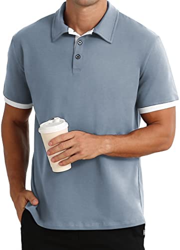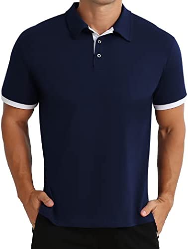 NITAGUT mens polo shirts are made of excellent fabric(95% cotton,5% spandex).Soft, comfortable and strechy to give you a cool feeling in the hot summer.The skin-friendly cotton shirts are also machine washable!To protect the fabric,please let it dry naturally or tumble dry lowButton closure,US Size.The lightweight golf polo shirt has good workmanship and sweat absorption performance.The simple slim-fit design and Superior cotton fabric make this short sleeve polo tee durable and an on-trend essential.The white trim on the sleeve also makes this T-shirt more fashionable and unique.