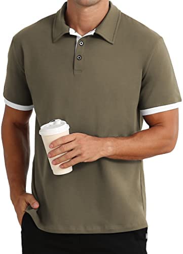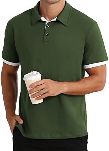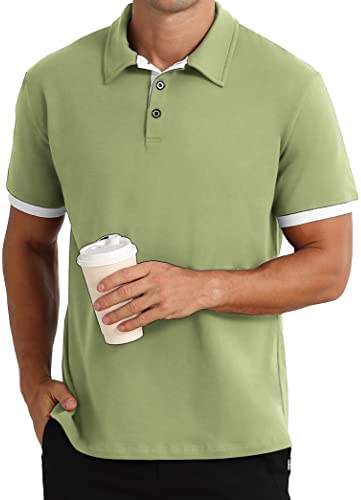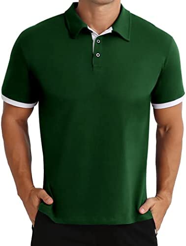 - Feature:Button closure,US Size.<br>The lightweight golf polo shirt has good workmanship and sweat absorption performance. The simple slim-fit design and Superior cotton fabric make this short sleeve polo tee durable and an on-trend essential.The Grass Green trim on the sleeve also makes this T-shirt more fashionable and unique.