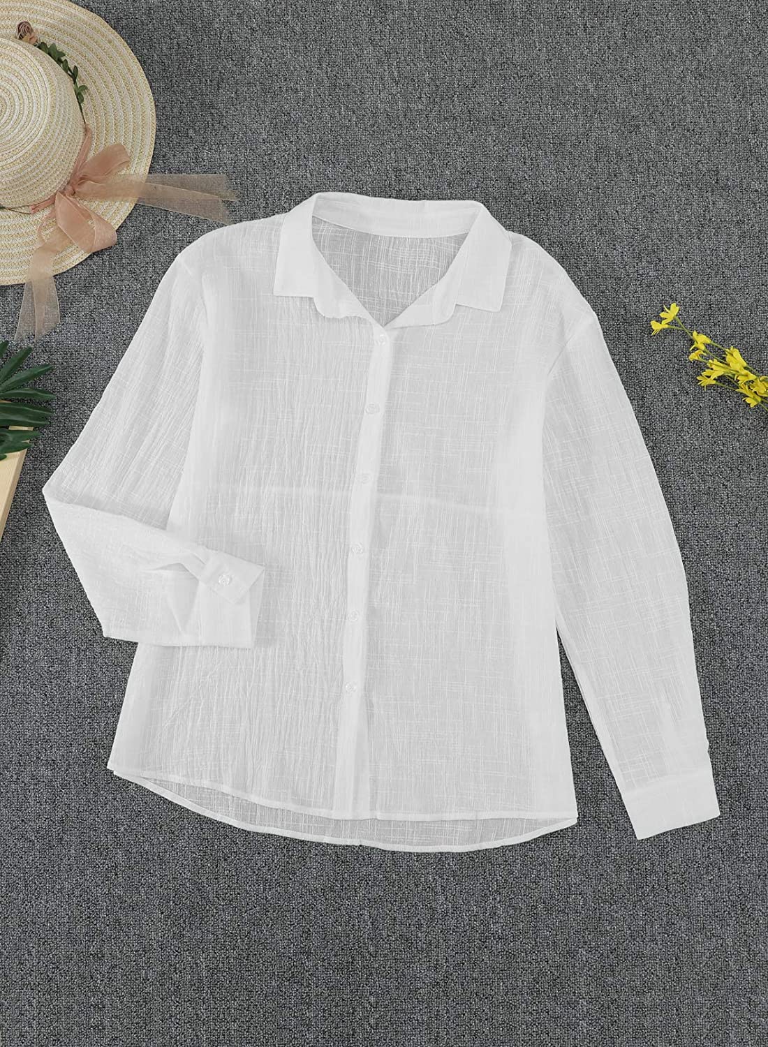 Features: Long Sleeve, Collared V Neck, Roll-up Sleeves, Button Down, Solid Color Design