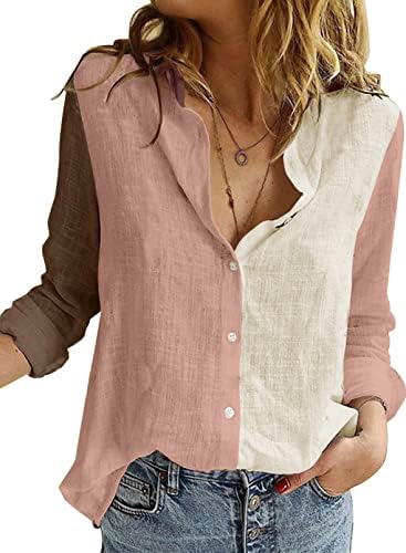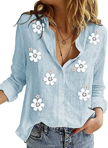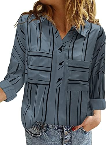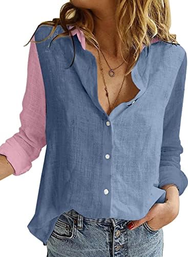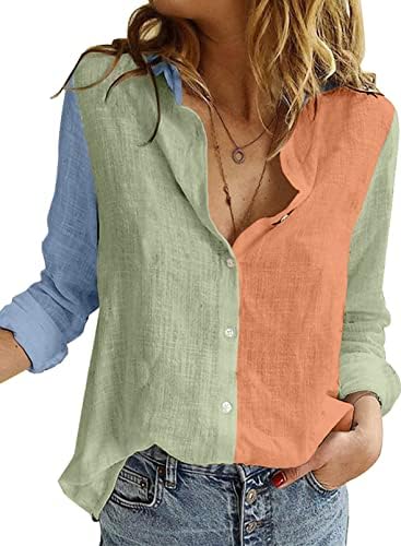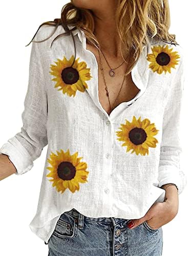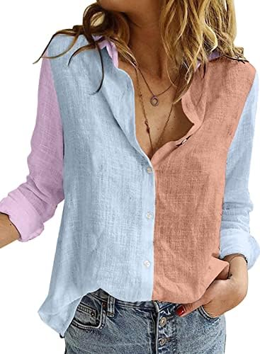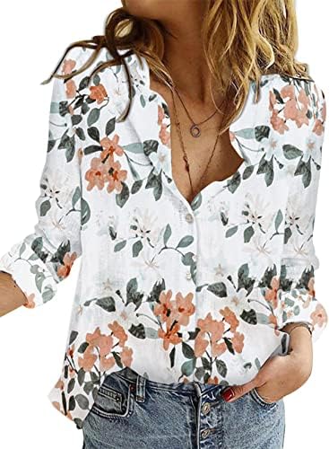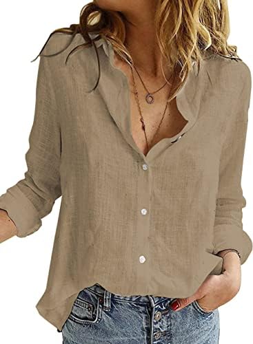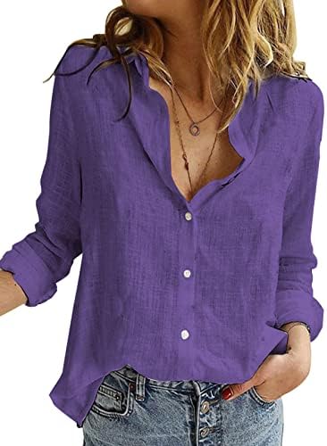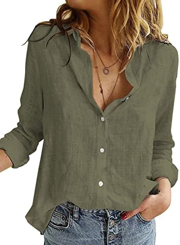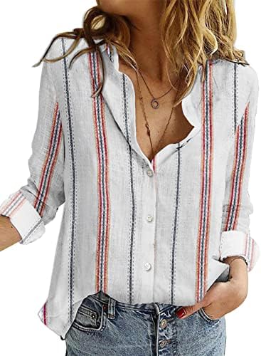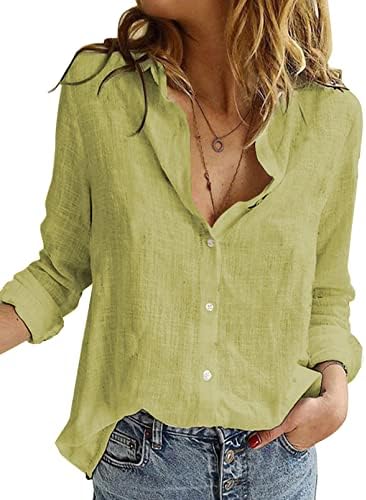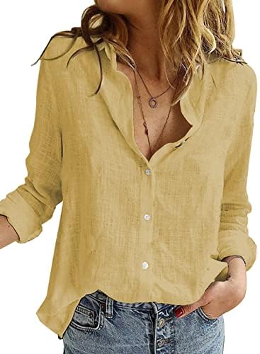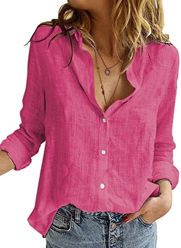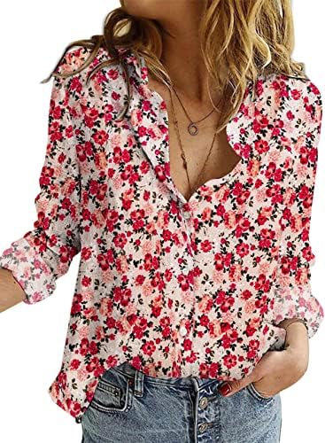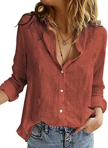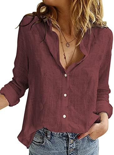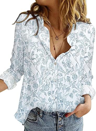 Astylish Womens V Neck Roll up Sleeve Button Down Blouses Tops