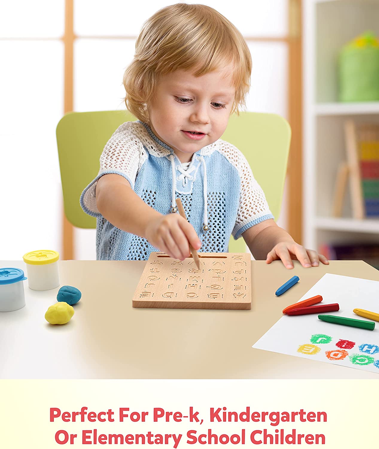• Letter Board Tracing:The gently engraved curved grooves provide a form to practice hand-eye coordination using real-world challenges. Helps with controlling the hand movement and muscle memory for writing ABCs and alphabet recognition and formation them.