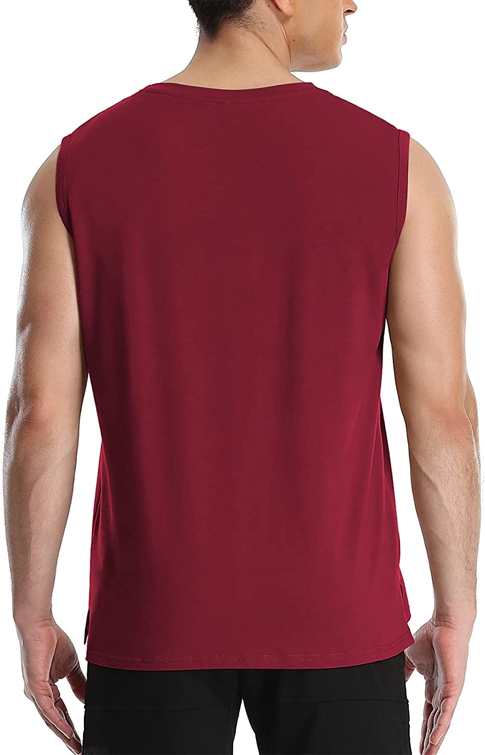 - Mens casual classic tops with sleeveless design, solid colors, split in hem allows more movement for bodybuilding and training.