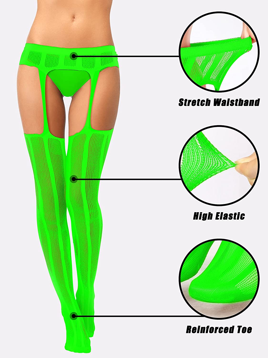 Make you attractive: the pantyhose stocking is consist of fishnet thigh high stocking and garters belt, chic design that will make you look more attractive and eye-catching, while keep the stocking in right place, not easy to fall down