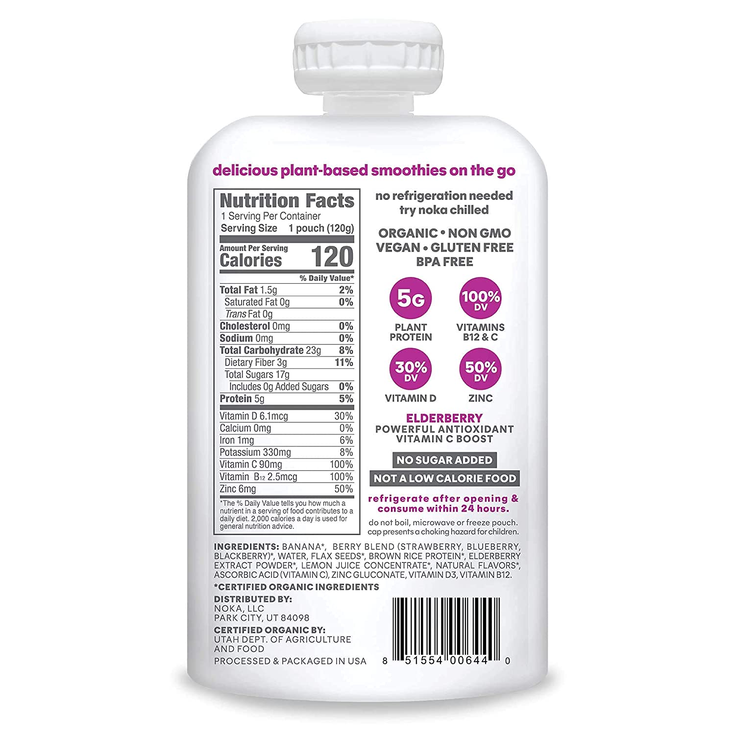 • Berry Smoothies with Organic Fruit: Made with a delcious fruit blend including strawberry, blueberry, blackberry and banana. Ditch the dry energy bars, dried fruit, trail mixes and jerky for a light and refreshing Noka smoothie.
