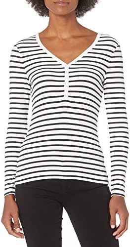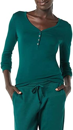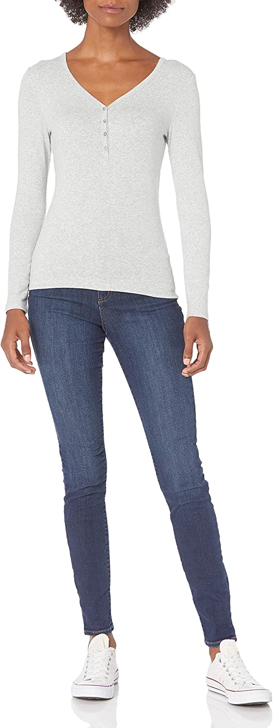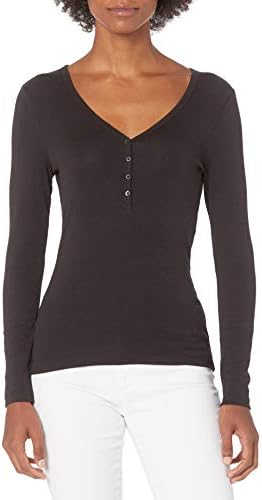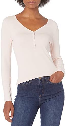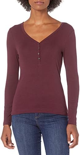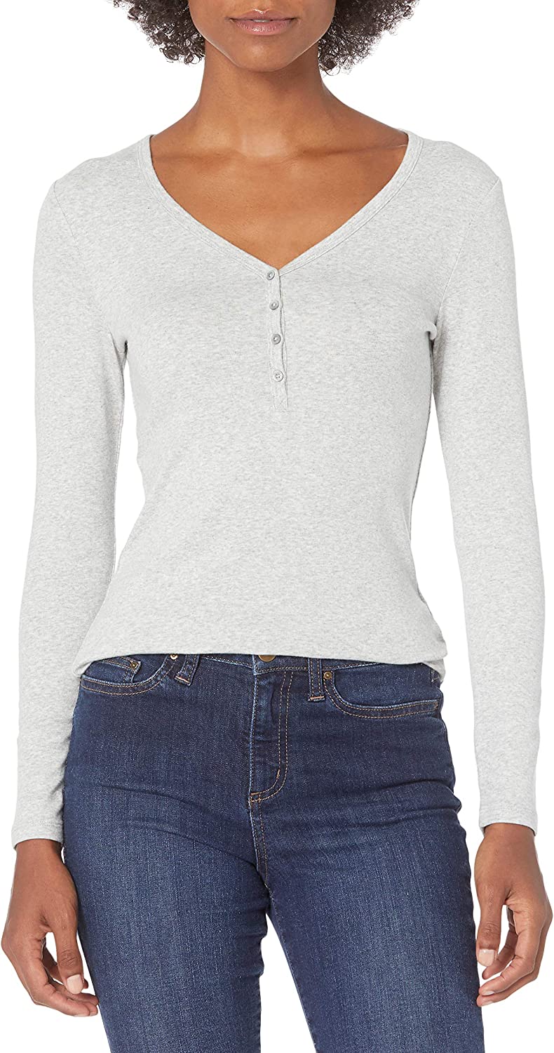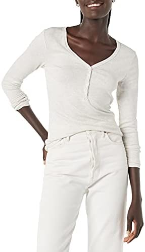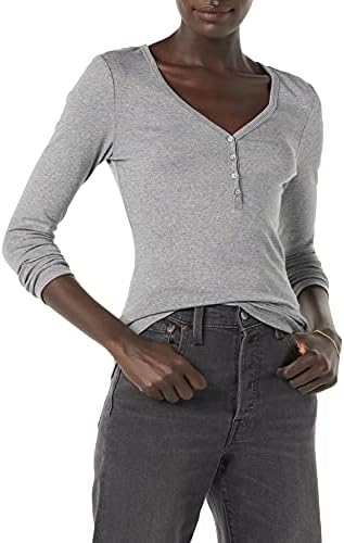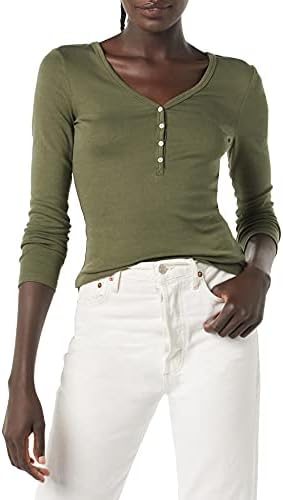 Amazon Essentials Women's Ribbed Knit Long Sleeve Henley Slim Fit T-Shirt