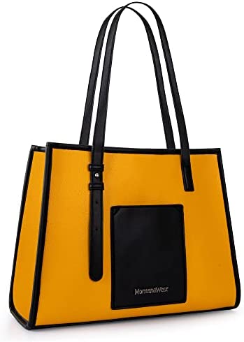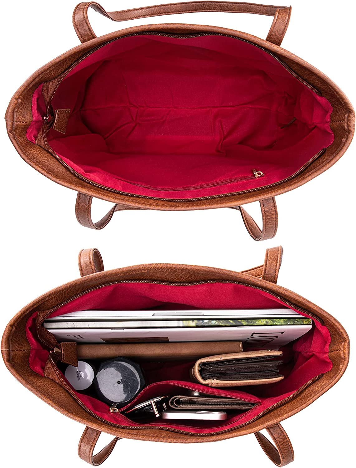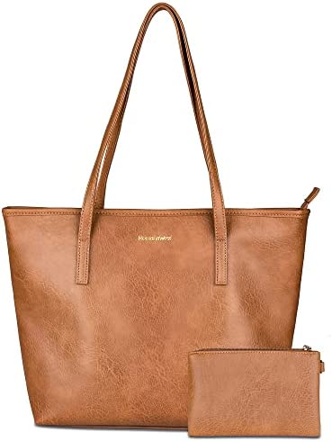MATERIAL: Crafted from buttery smooth PU leather (light-weight distressed-look) with soft fabric lining. This classic handbag is the effortlessly Tote you'll want to have and rely on for the rest of the time. It's simple yet elegant and spacious enough to carry your laptop or iPad.