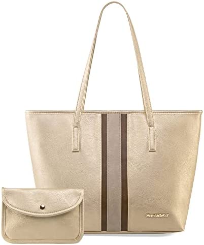 CLASSIC DESIGN: Minimalistic and aesthetic design with gold tone logo and hardware. Featuring top zipper closure and double flat strap. It's versatile enough to be carried almost anywhere, from work to grocery runs, gym visits, all-day shopping trip, and evenings out on the town.