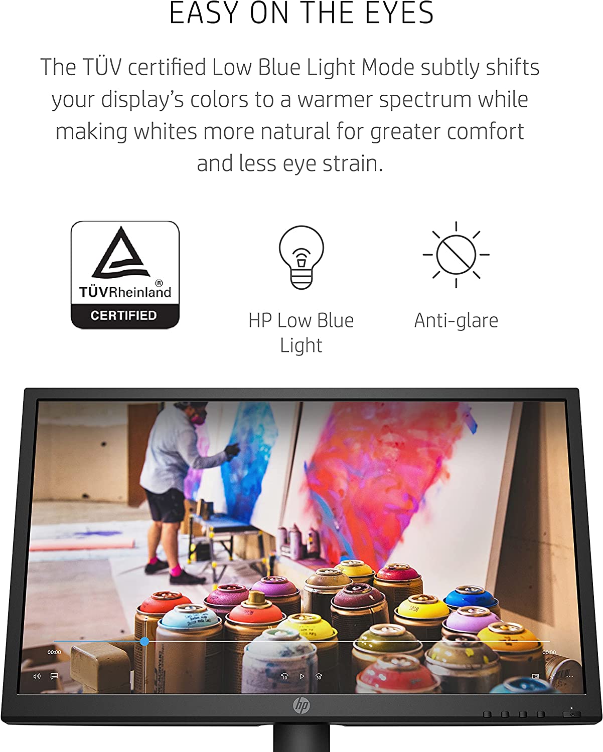 • WARRANTY AND SUSTAINABILITY – Rest easy and work confidently with an environmentally conscious and energy-efficient monitor, backed by HP standard 1-year limited warranty and shipped in completely recyclable packaging (4).