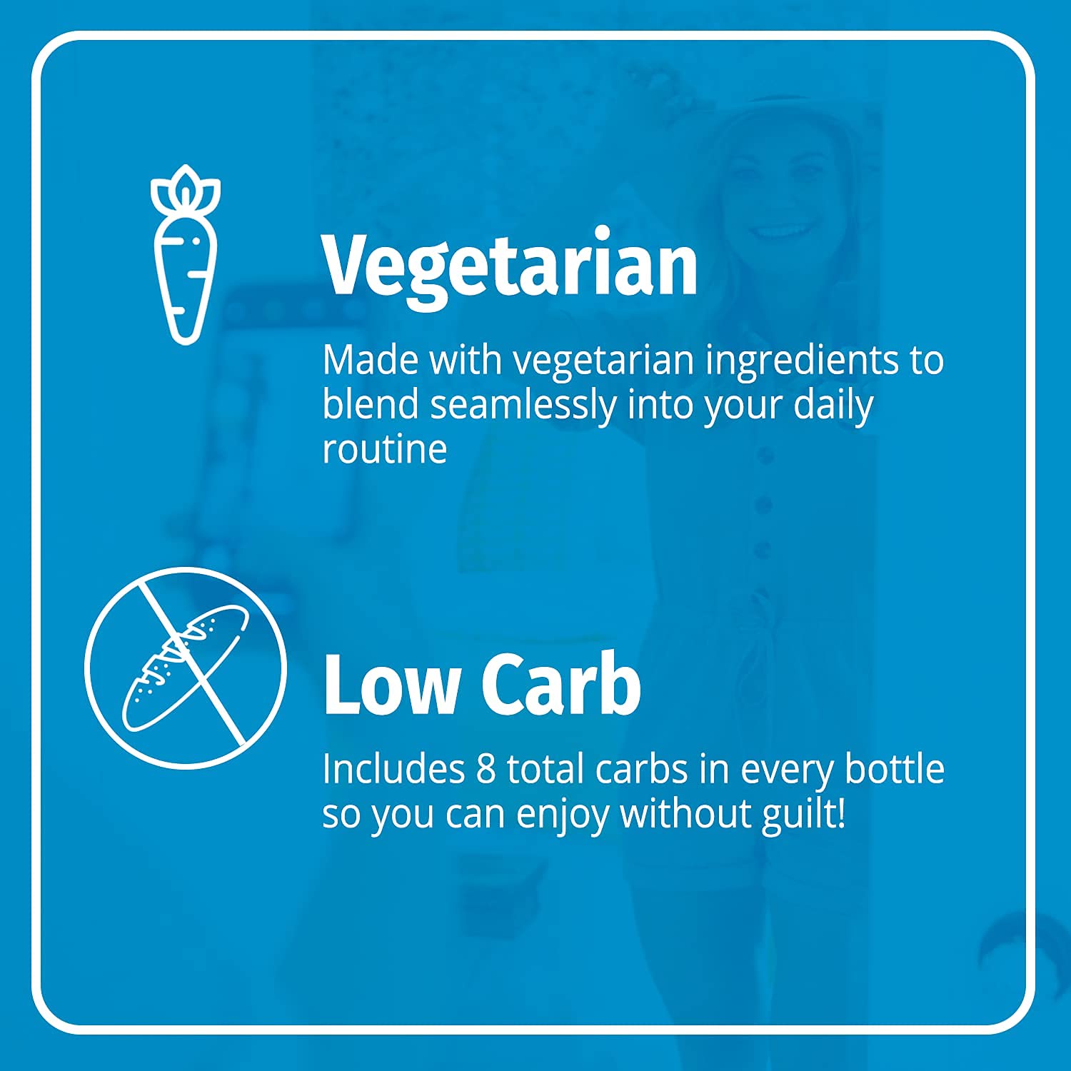 • LOW CARB: Made with vegetarian ingredients to blend seamlessly into your daily routine.. Includes 8 total carbs in every bottle so you can enjoy without guilt.